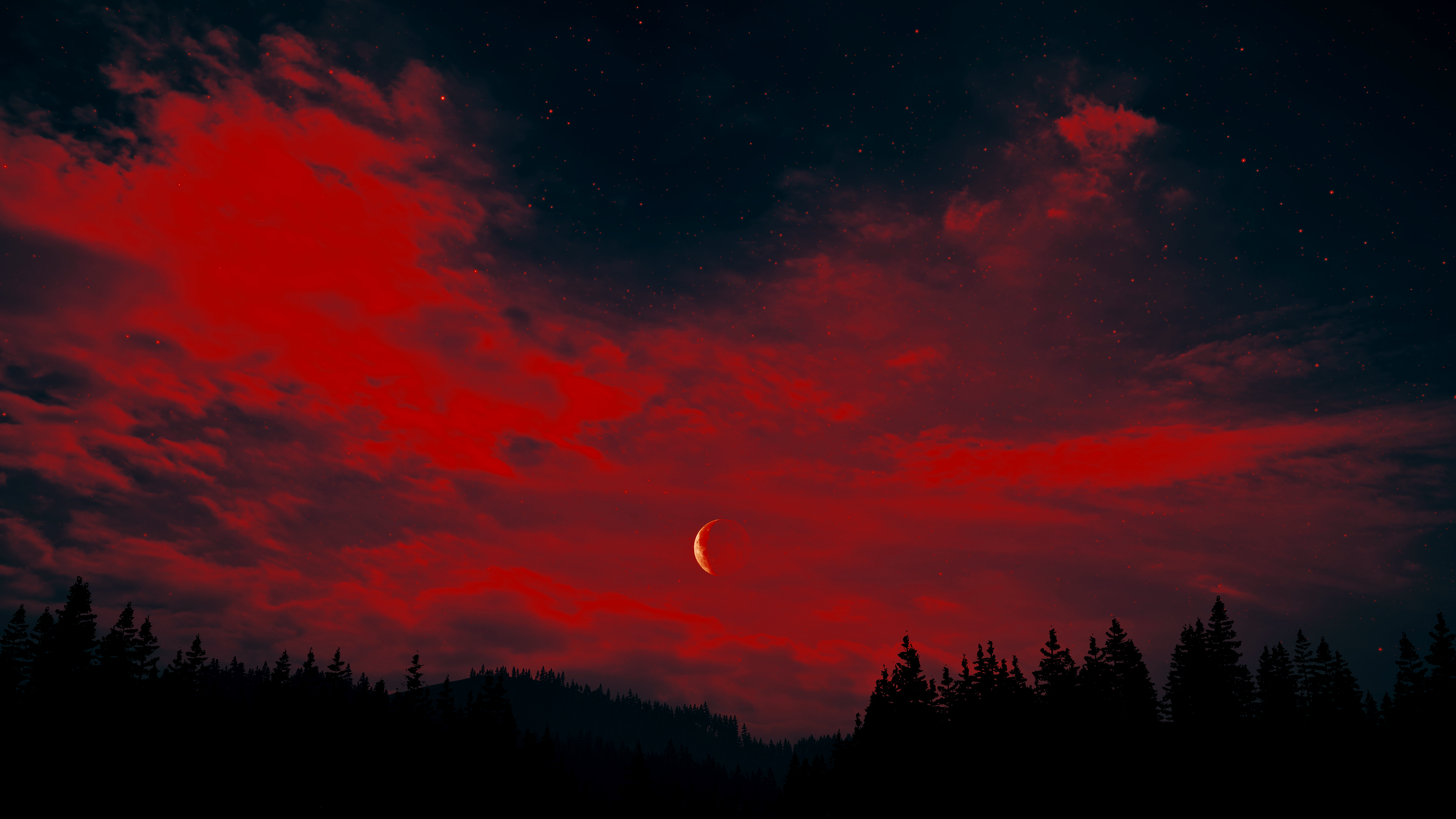 Distant Cry Reshape Sunset Moon Sky Forest Nature 4K Wallpaper