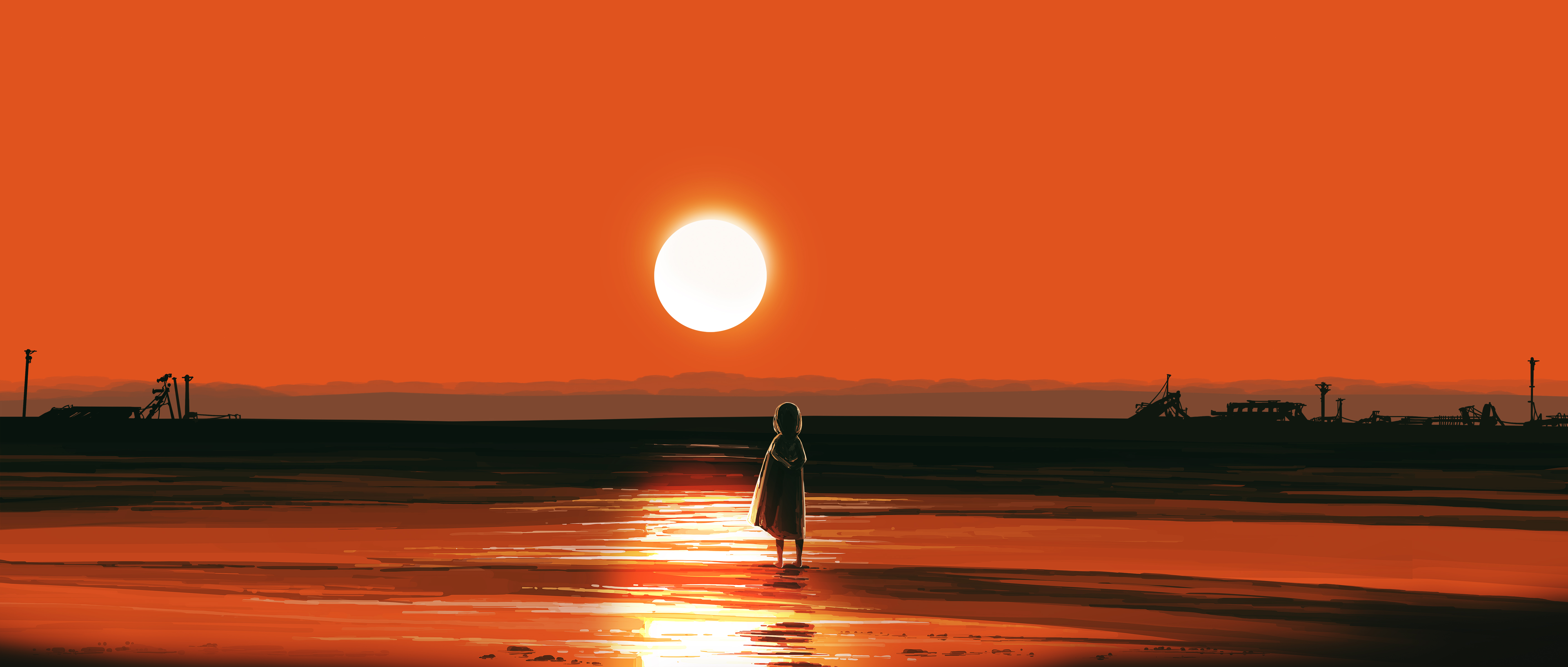 Elegant AI Art Pictures Widescreen Sunset Landscape Orange Nature Sunshine 4K Wallpaper