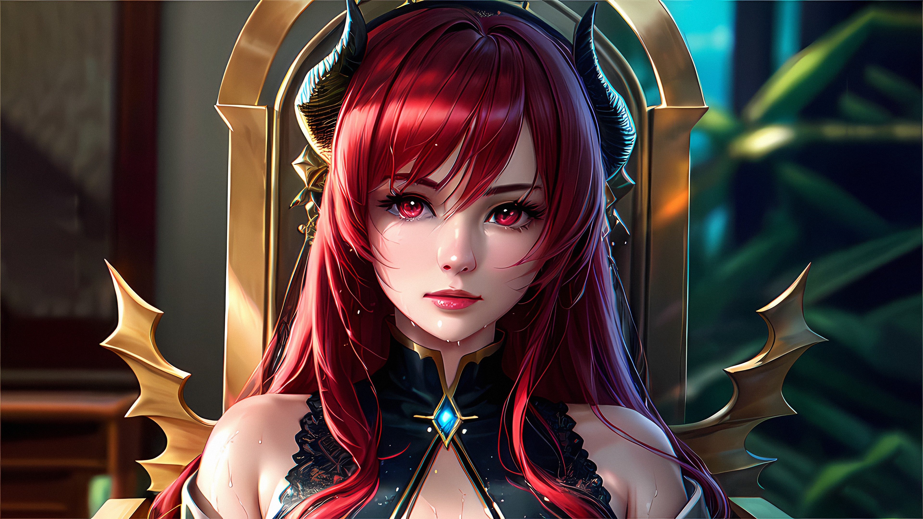 Female Dragon Girl Art Trumpet Anime Woman Dragon Horn Throne 4K Wallpaper