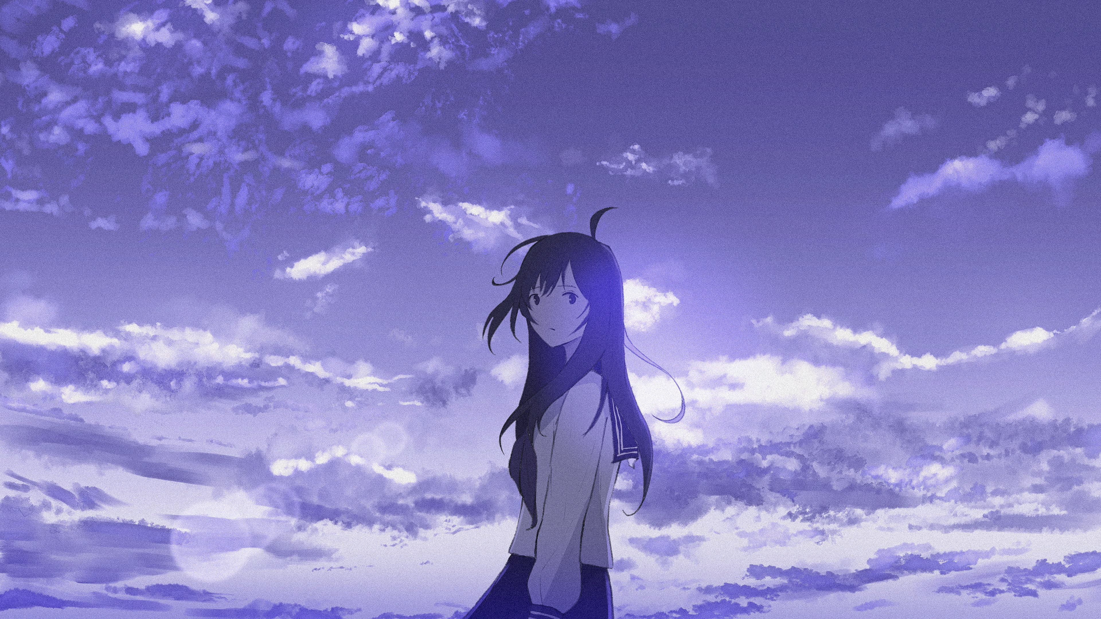 Woman long hair outdoor illustration anime girl school uniform cloud purple brunette sky 4K wallpaper