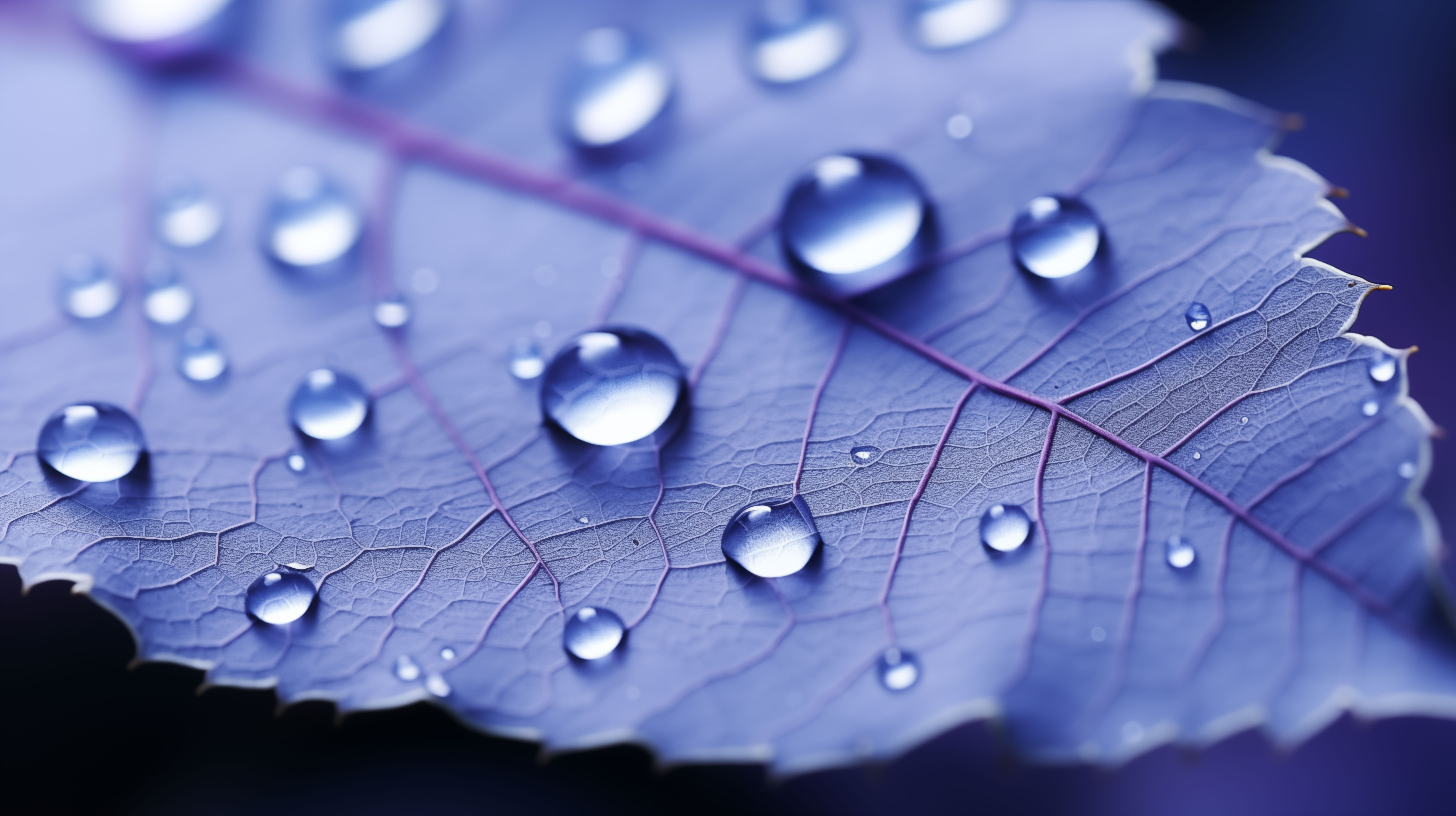 Art Leaves Blue Water Drops AI Art Fresh Healing Purple Computer Wallpaper 4K Wallpaper