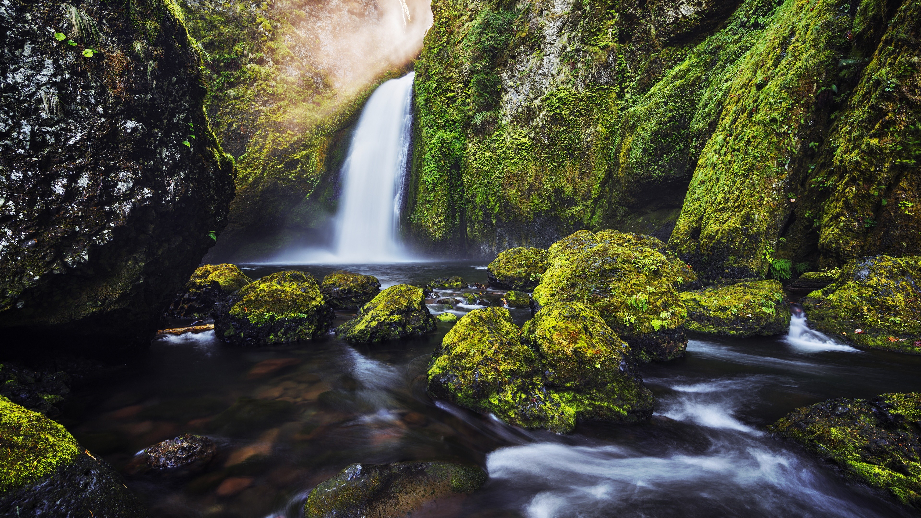 Free download Forest Green Waterfall Moss River Computer Wallpaper 4K Wallpaper...