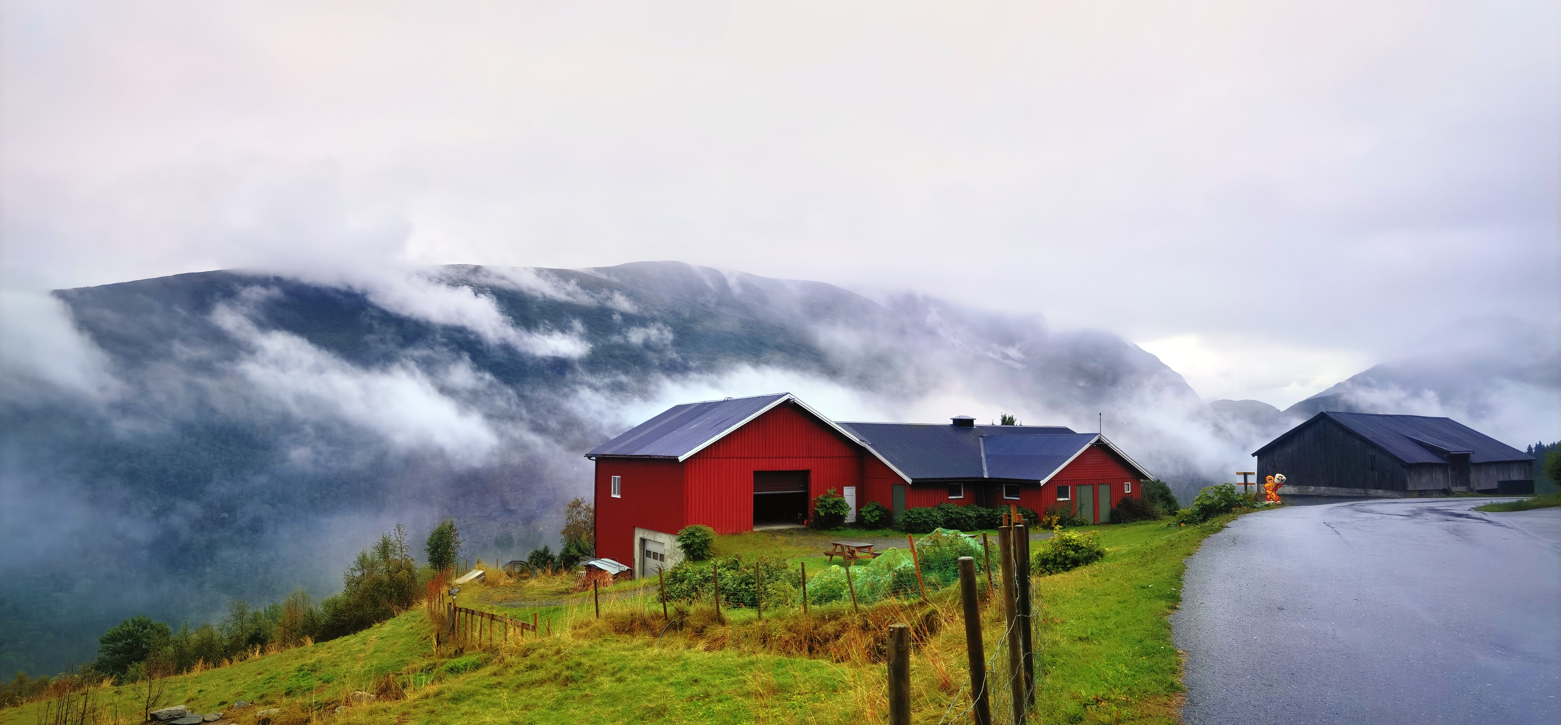 Landscape Mountain House Clouds Architecture Photography Computer Wallpaper 4K Wallpaper