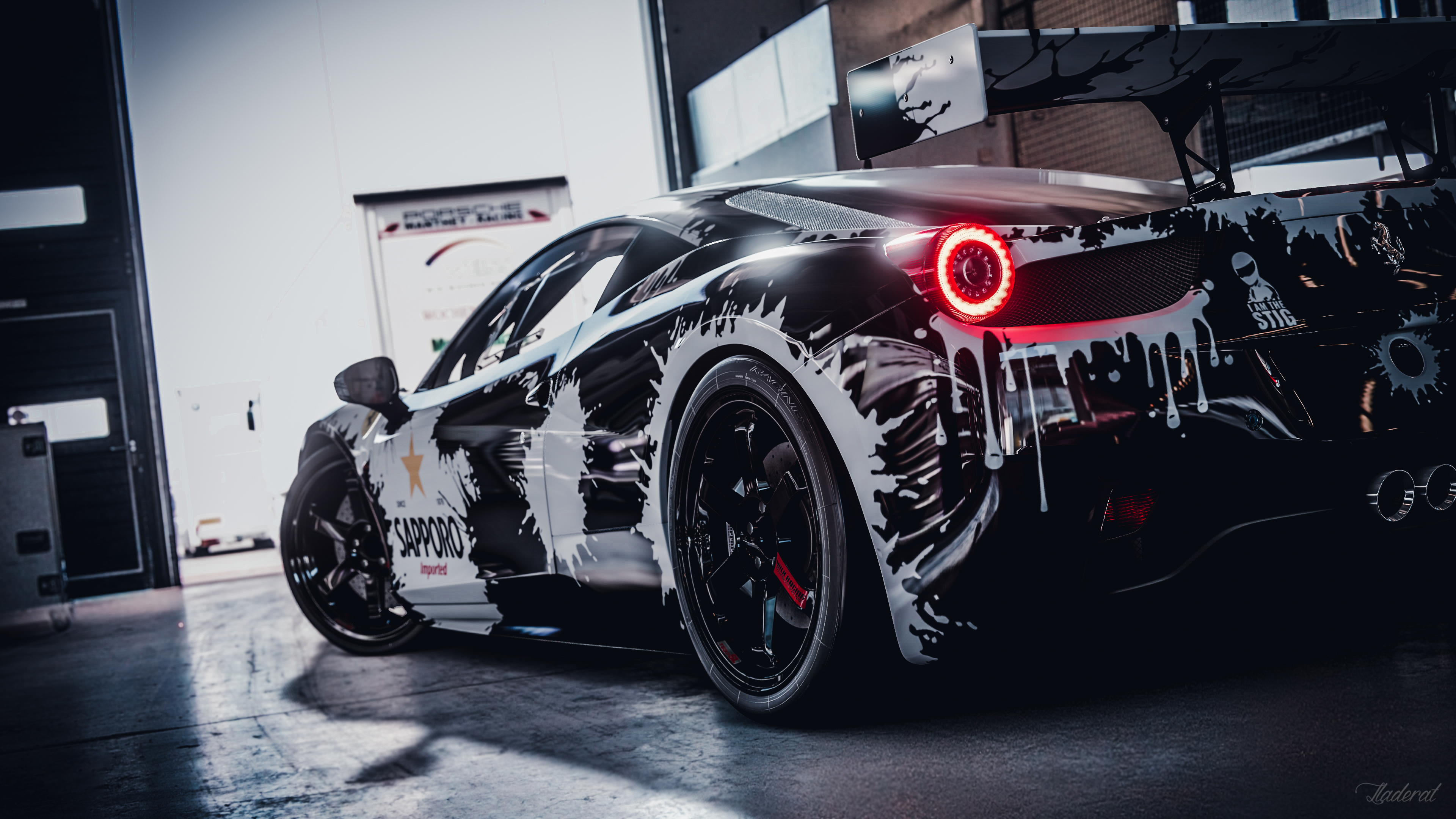 - Garage Ferrari Black White Red Light Car Game CG Computer Wallpaper 4K Wallpaper