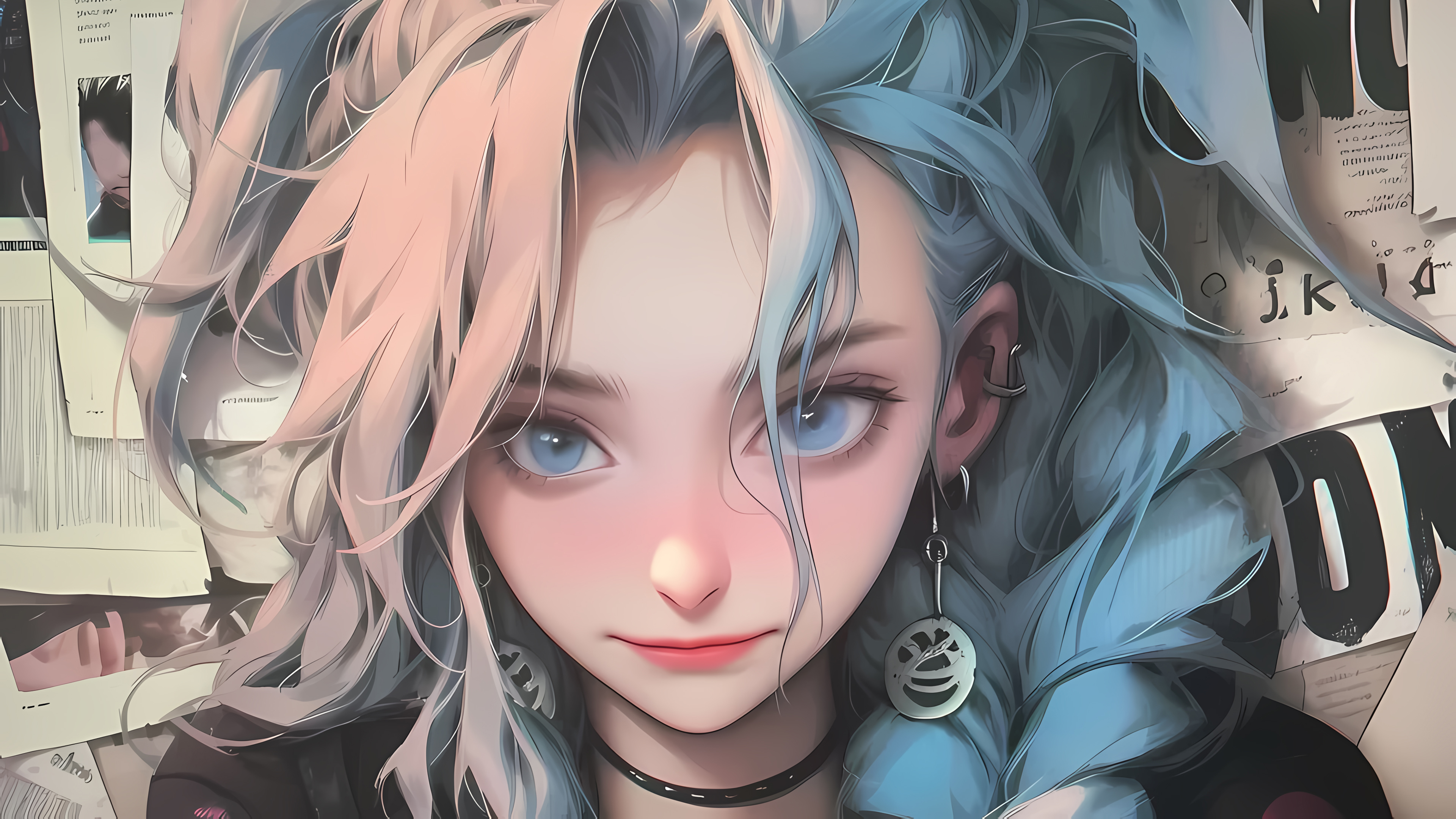 - Home > Cartoon Wallpaper >Free download Newspaper Wall Girl Blue Hair Beauty 4K Anime Wallpaper 4K Wallpaper