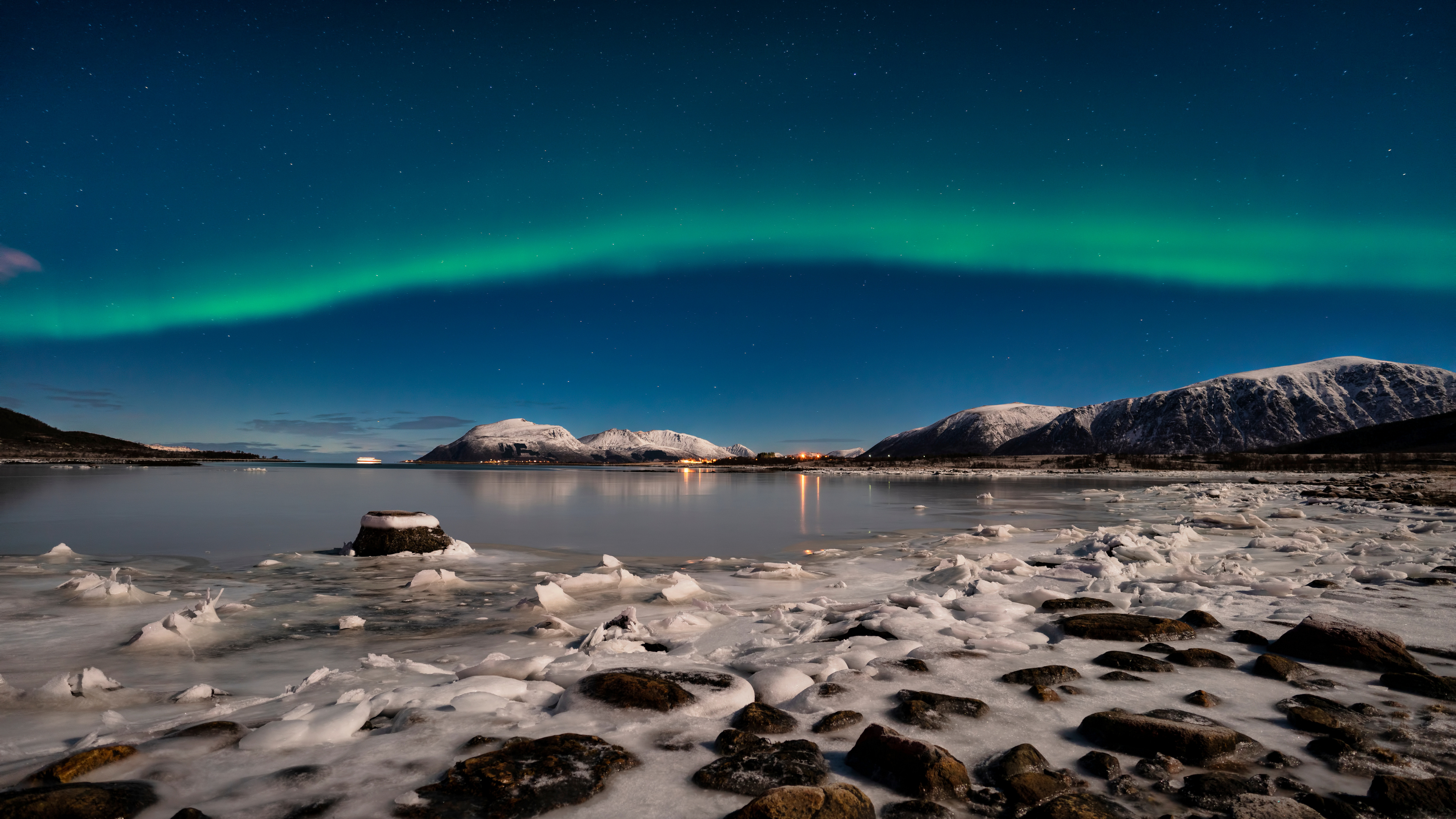 Aurora Winter Sky Ice Ocean Coast Nature Computer Wallpaper 4K Wallpaper