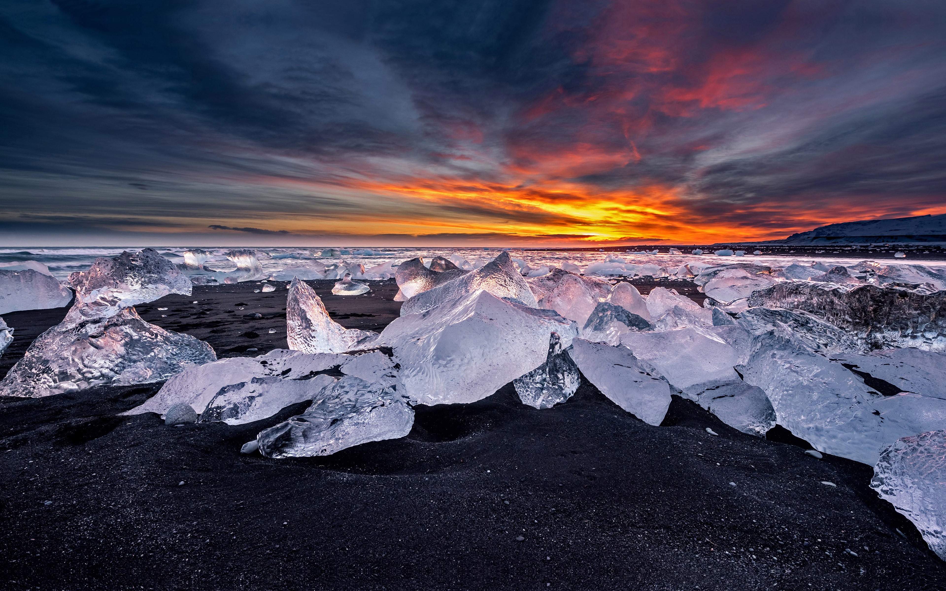 - Home > Landscape Wallpaper >Free download Cloud Landscape Ice Beach Sunset Black Sand Nature Winter Computer Wallpaper 4K Wallpaper