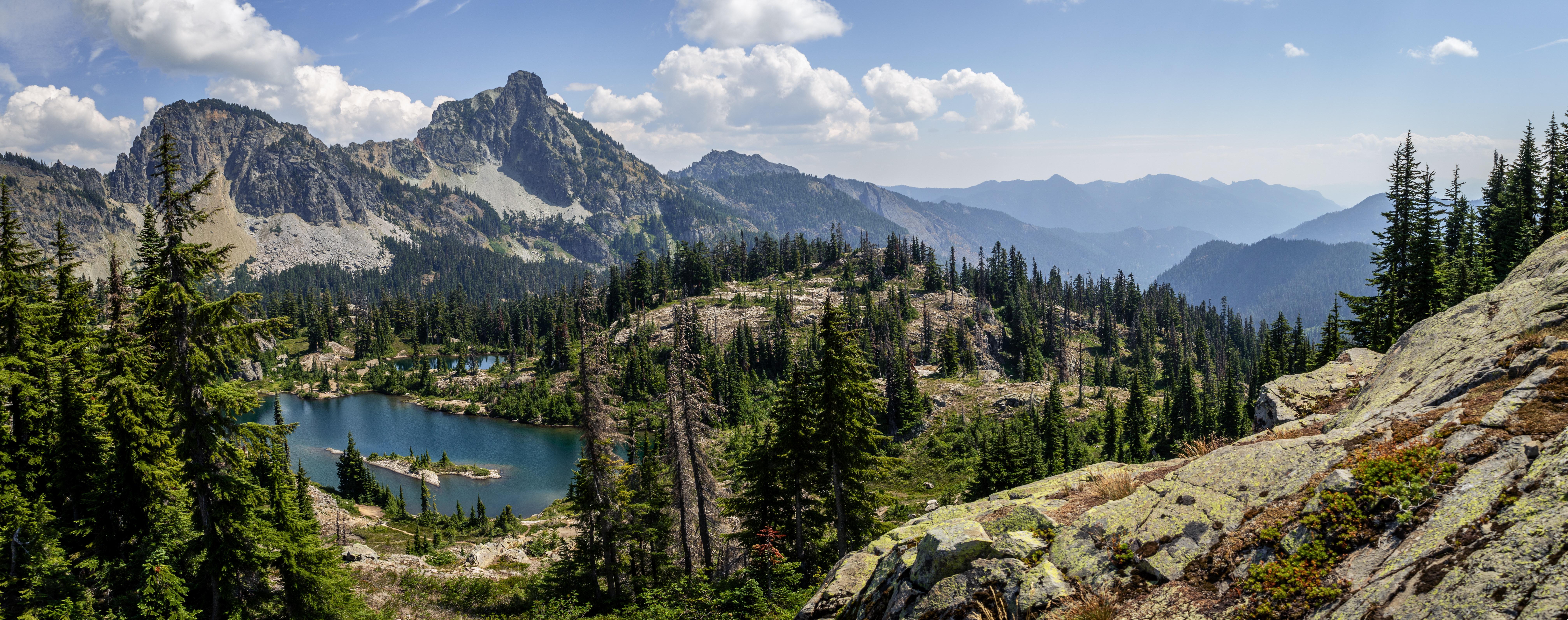 Forest Mountain View Mountain Range Nature Landscape Clouds Lake Cliffs Rocks 8K Wallpaper