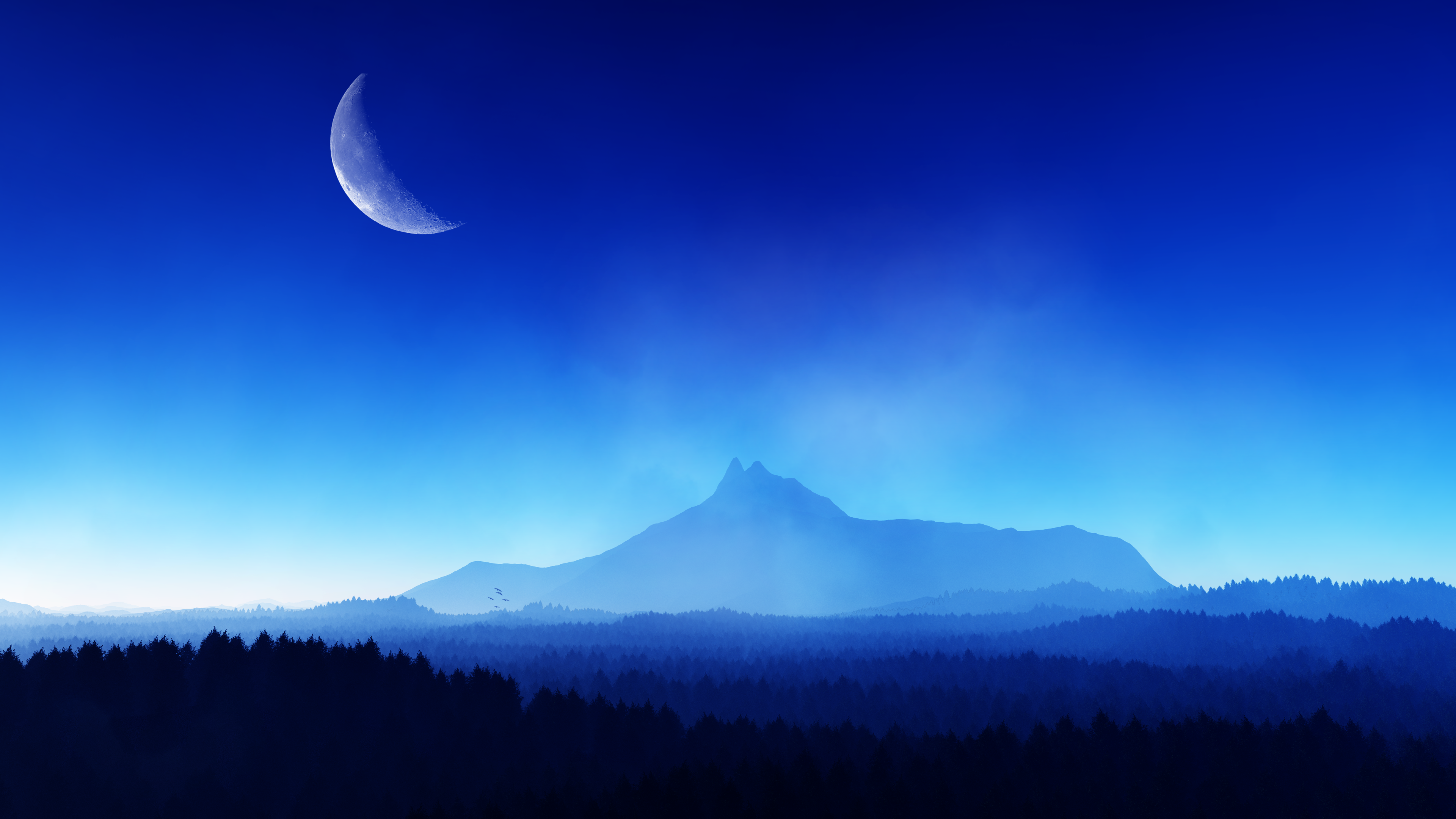 Hypnosis AI art pictures illustration landscape sky moon mountains nature forest blue 4K wallpaper