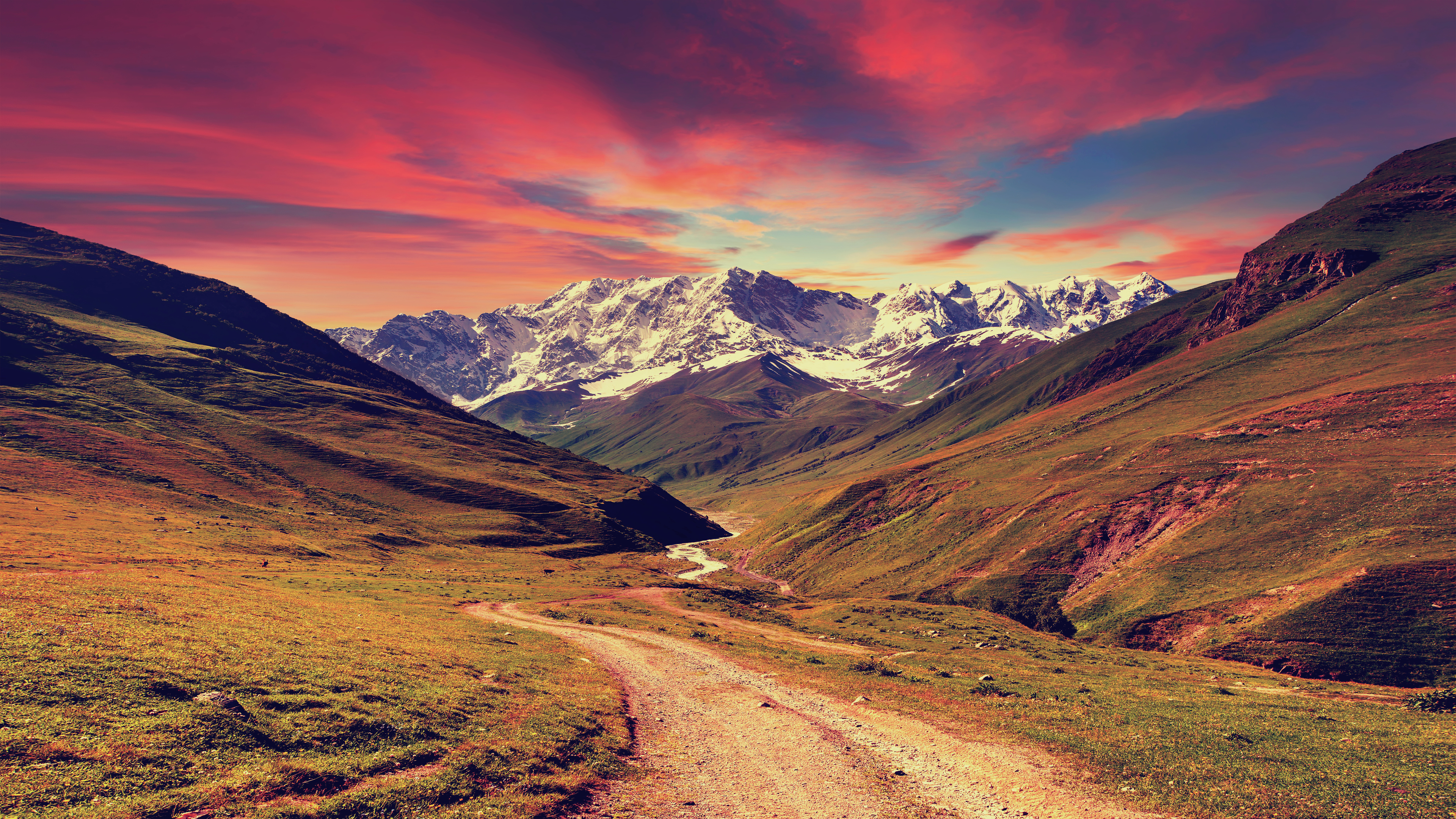 Landscape Nature Mountains Sunset Panorama Sunshine Computer Wallpaper 4K Wallpaper