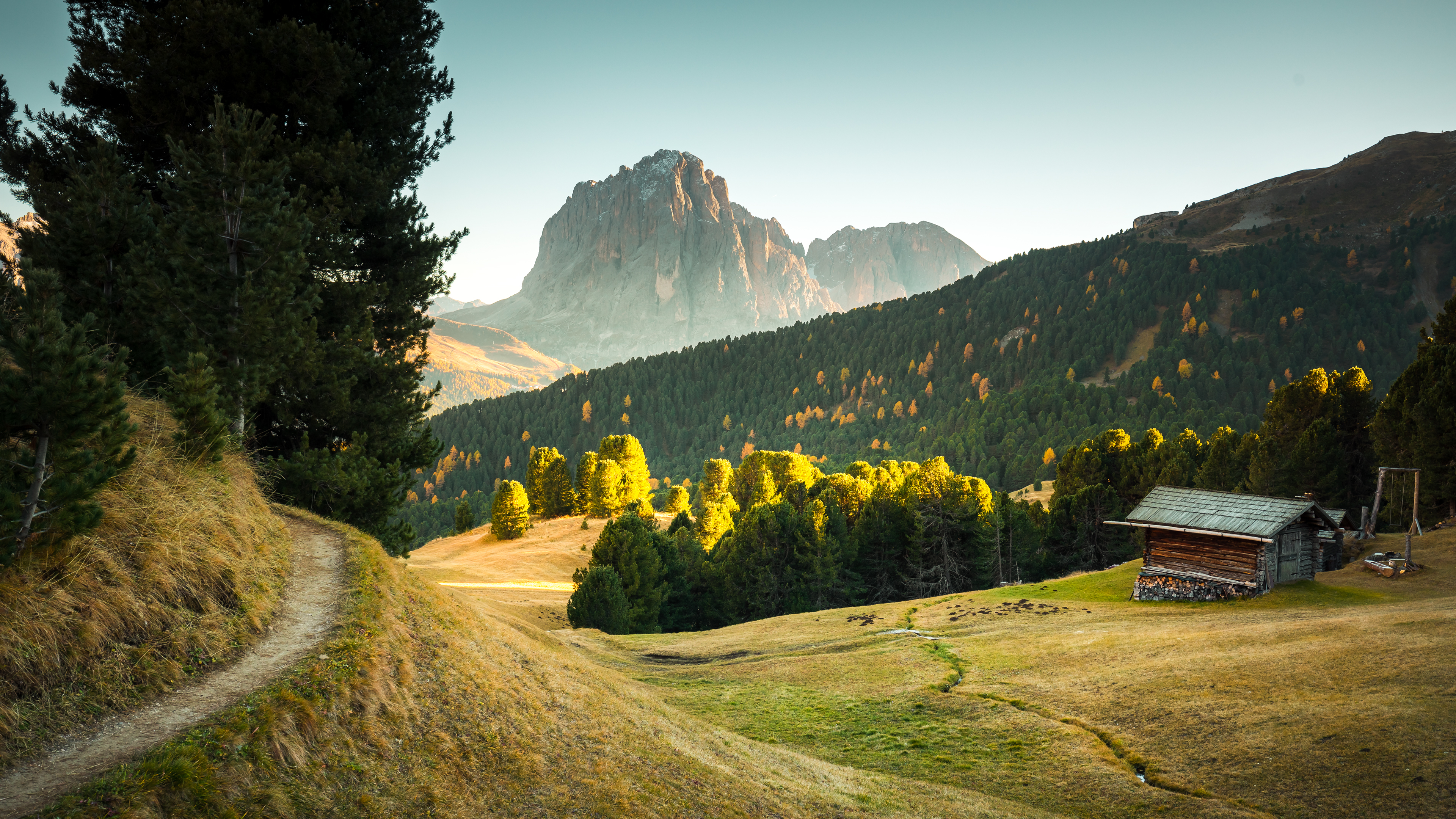 Landscape nature meadow forest rock trees architecture road sky 4K wallpaper