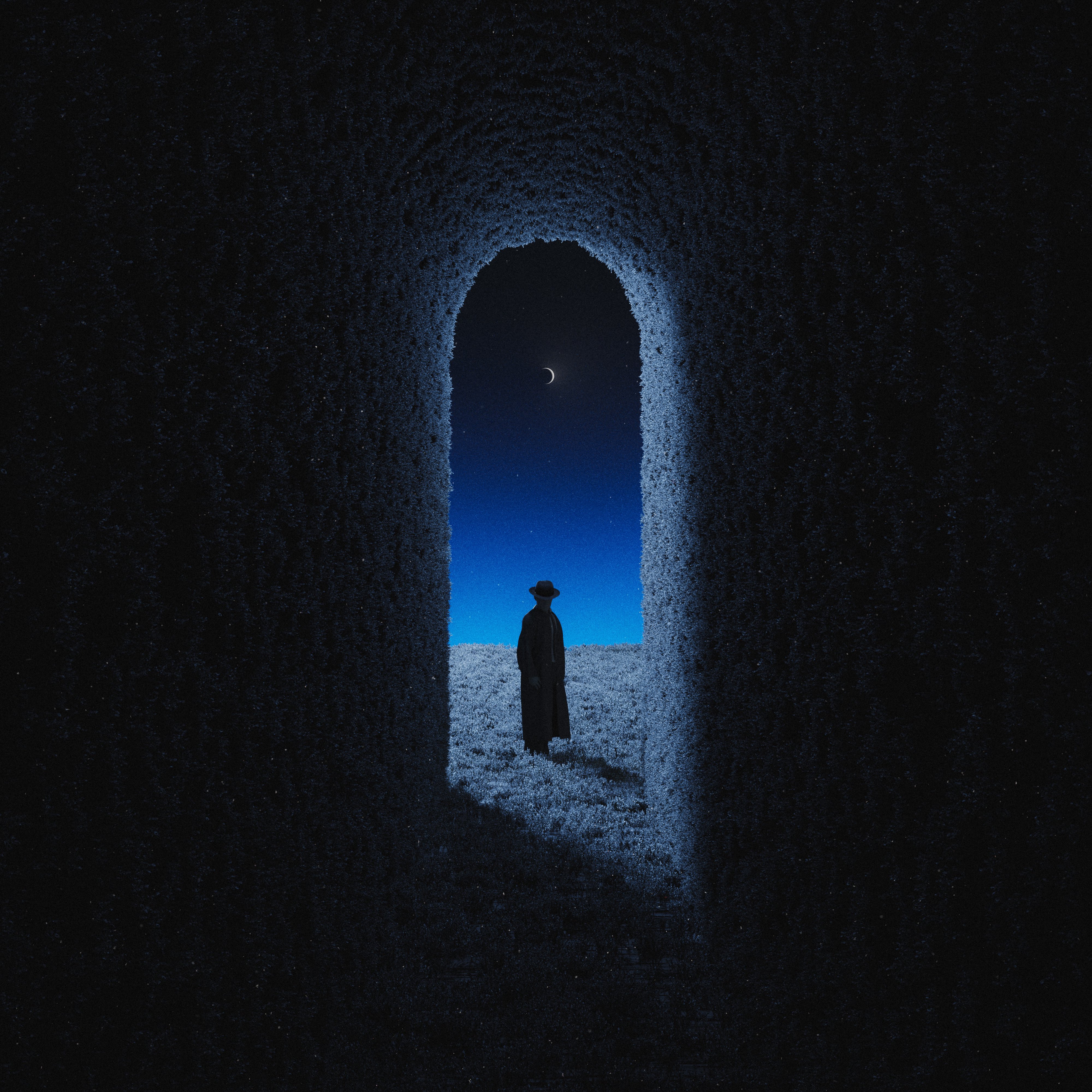Lonely Blue Dark Hedge Moon Low Light Digital Art Mobile Wallpaper 4K Wallpaper