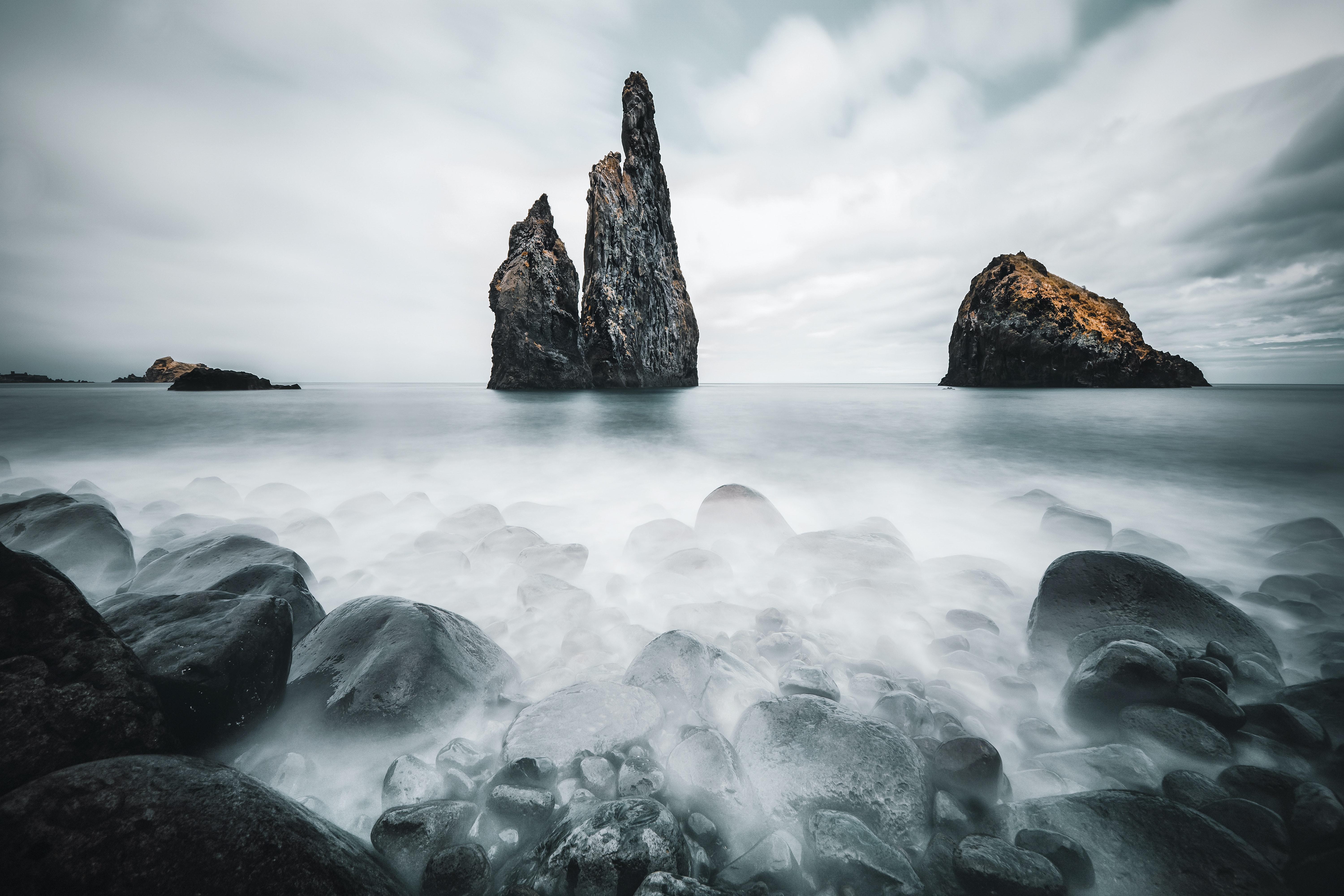 Nature Beach Sea Photography Landscape Clouds Waves Island Rocks Rock Formation Computer Wallpaper 4K Wallpaper