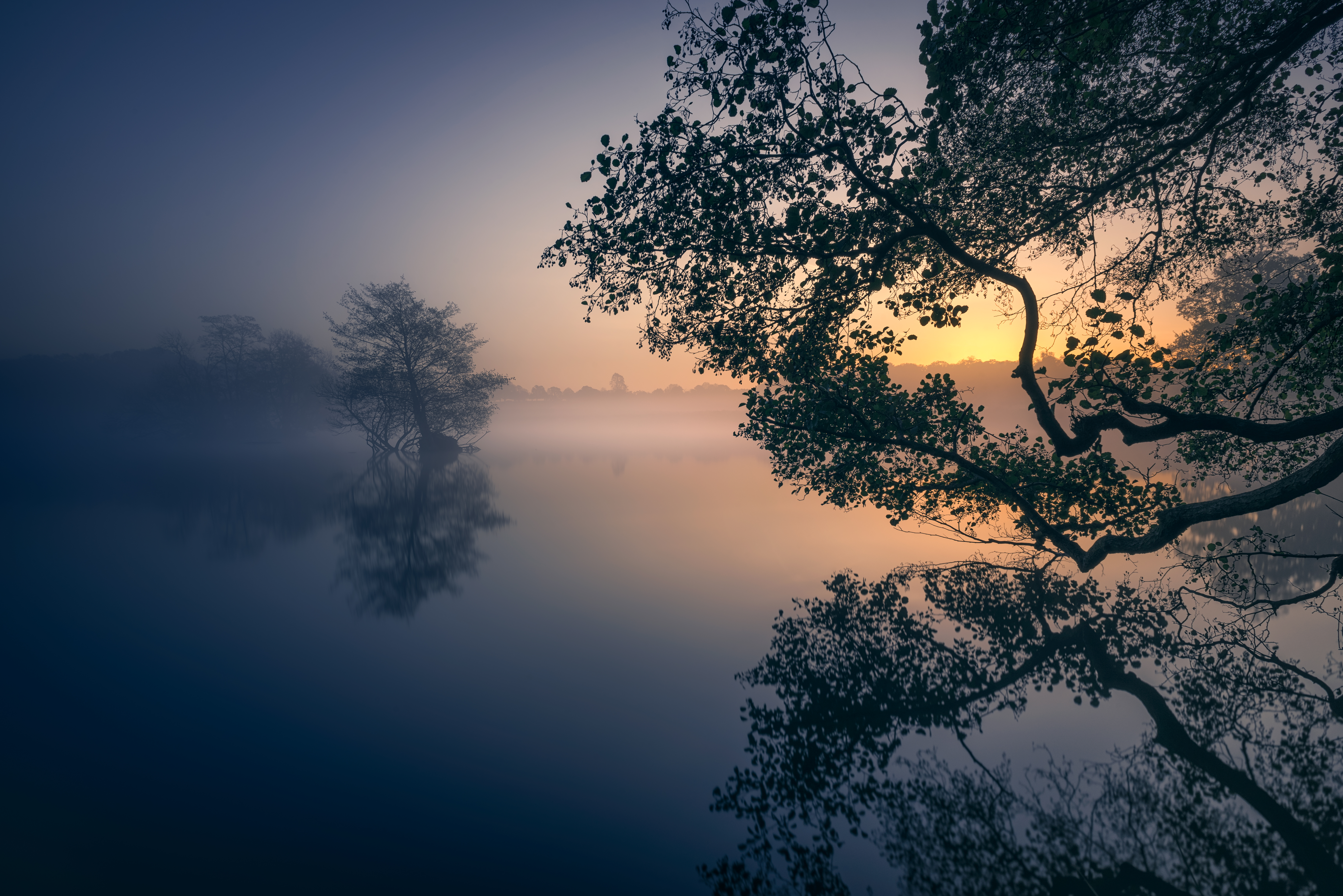 - Home > Landscape Wallpaper >Free download Nature Lake Mist Morning Calm Water Reflection Branch Calm Trees 4K Wallpaper