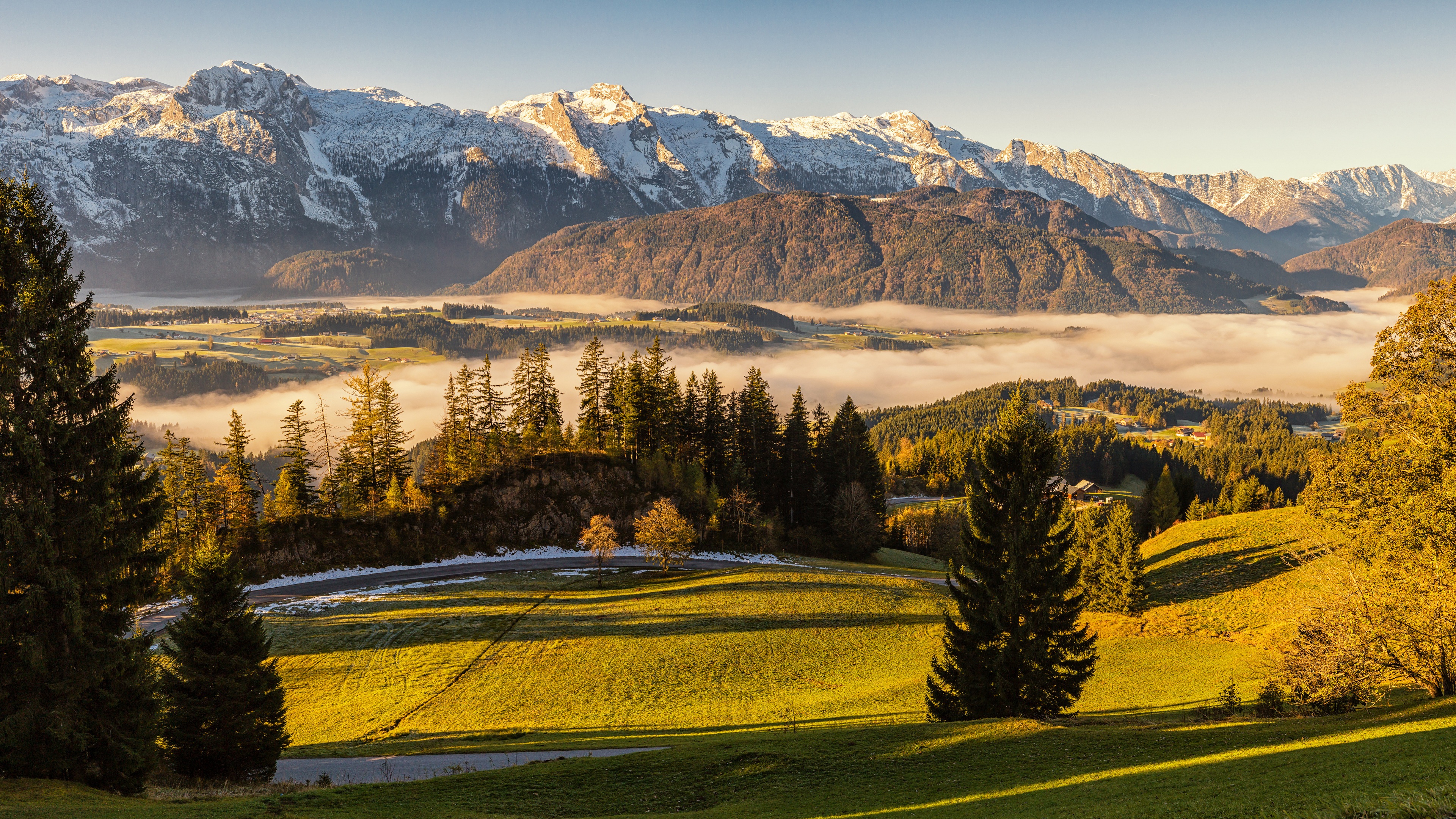 - Home > Landscape Wallpaper >Free download Nature Landscape Austria Fields Mountains Mist Forest Sky Computer Wallpaper 4K Wallpaper