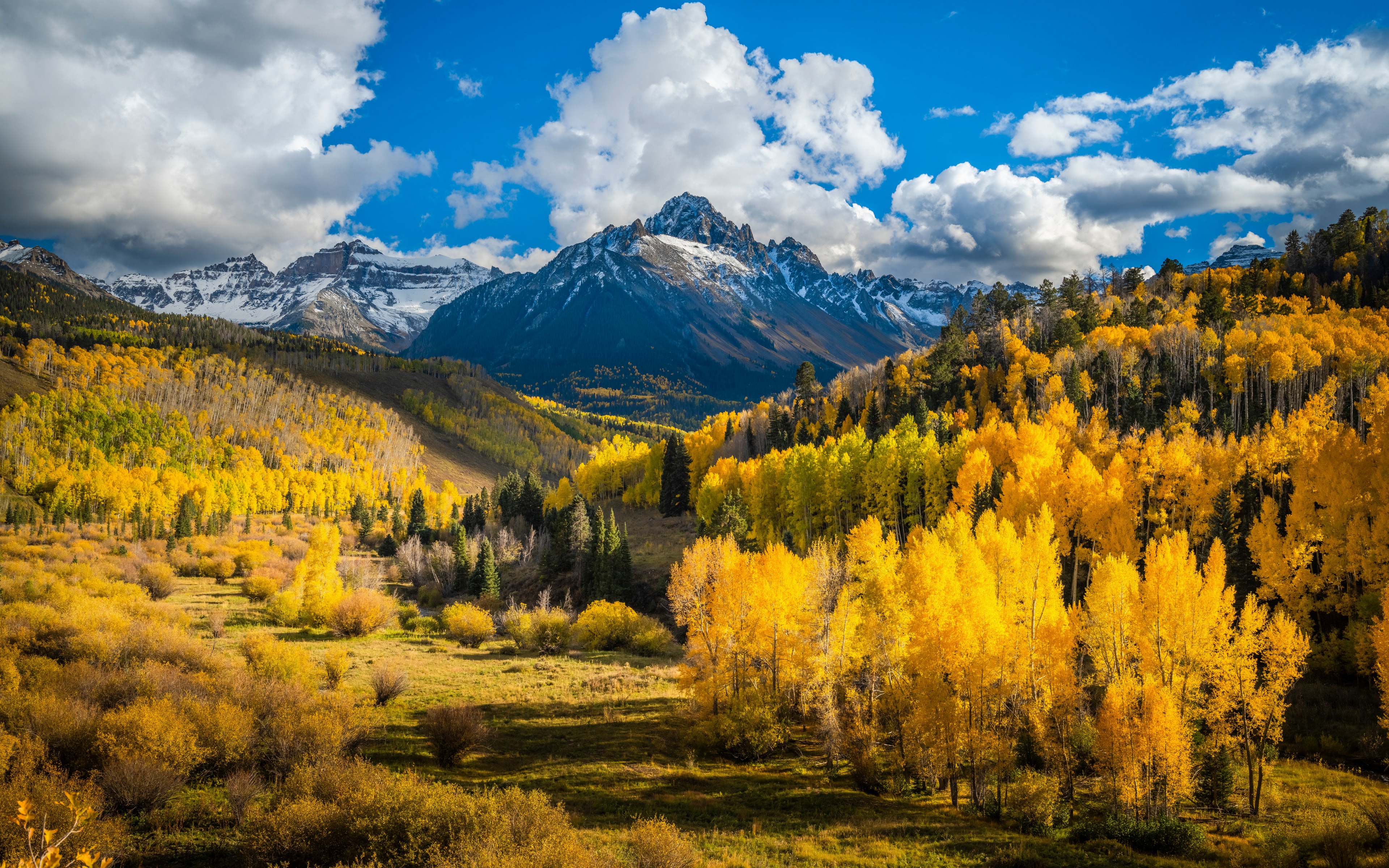 Nature Landscape Autumn Forest Mountains Sky Cloud Tree Snow 4K Wallpaper