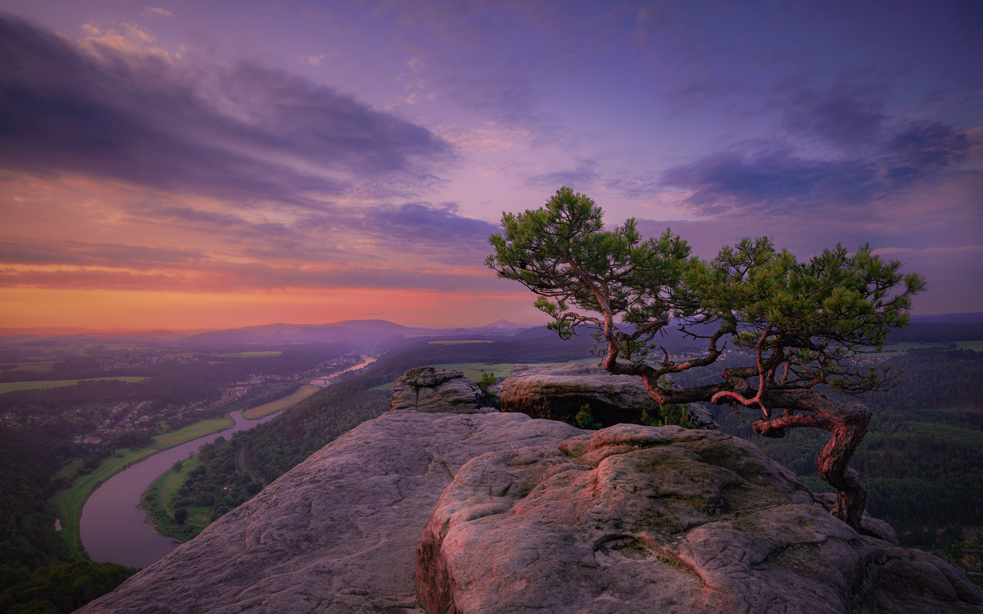 - Home > Landscape Wallpaper >Free download Nature Landscape Clouds Rocks Sky Trees River Mountain View Pines Sunrise 4K Wallpaper