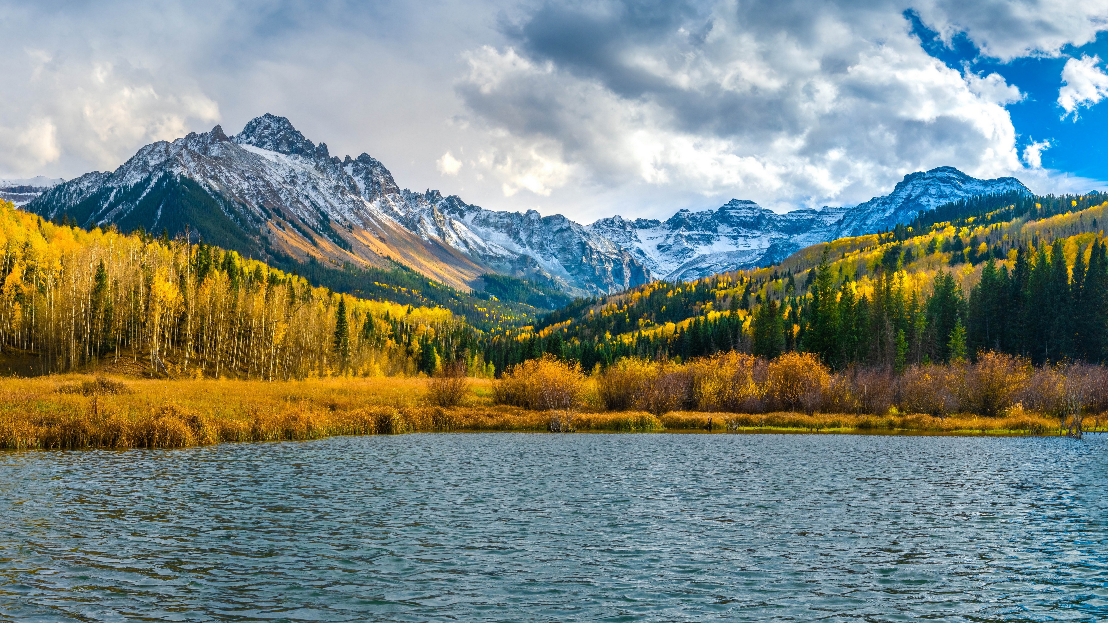 Nature Landscape Mountains Lake Autumn Forest Sky Clouds Water Snow Computer Wallpaper 4K Wallpaper