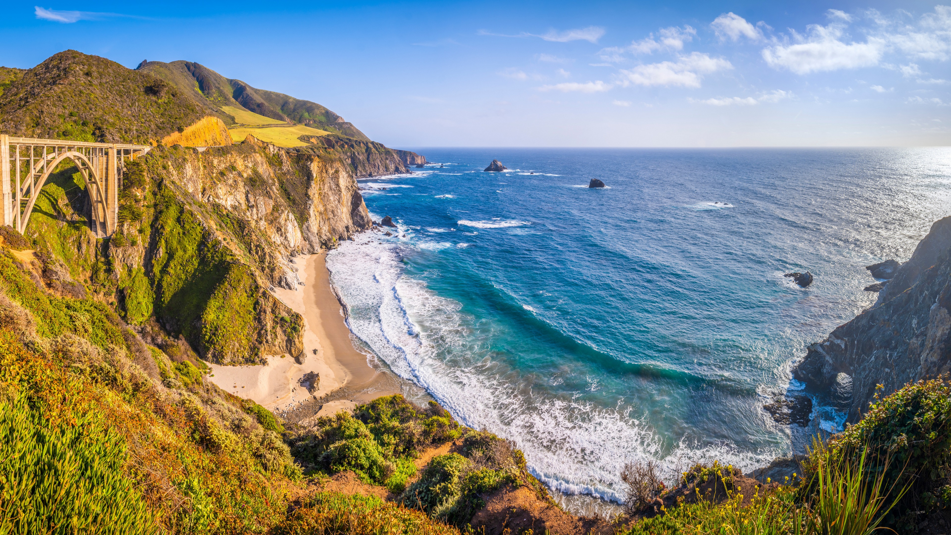 • Nature Landscape Ocean Coast Bridge Sky Rock Computer Wallpaper 4K Wallpaper