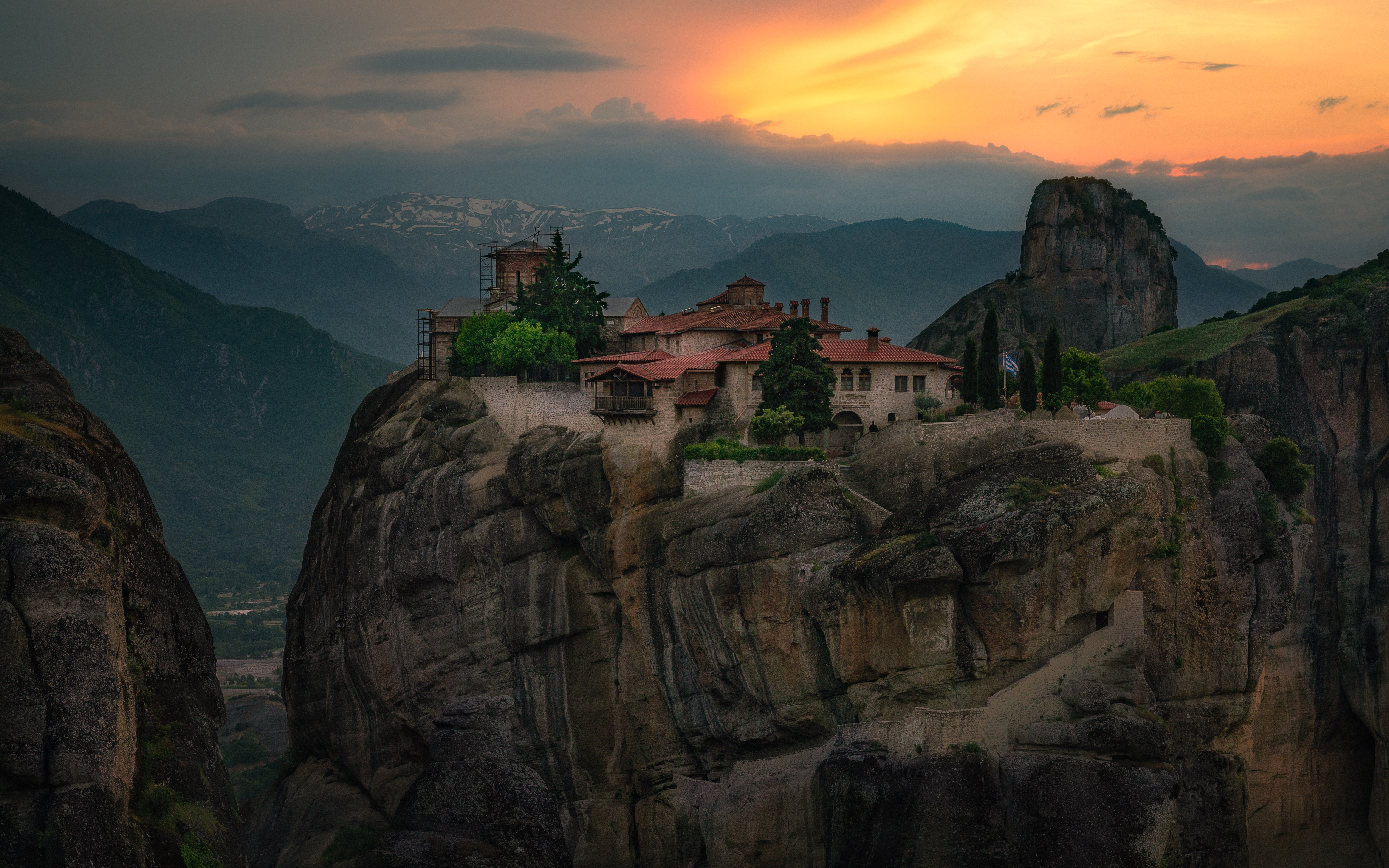 Nature Landscape Sky Cloud Rock Mountains Trees Monastery 4K Wallpaper