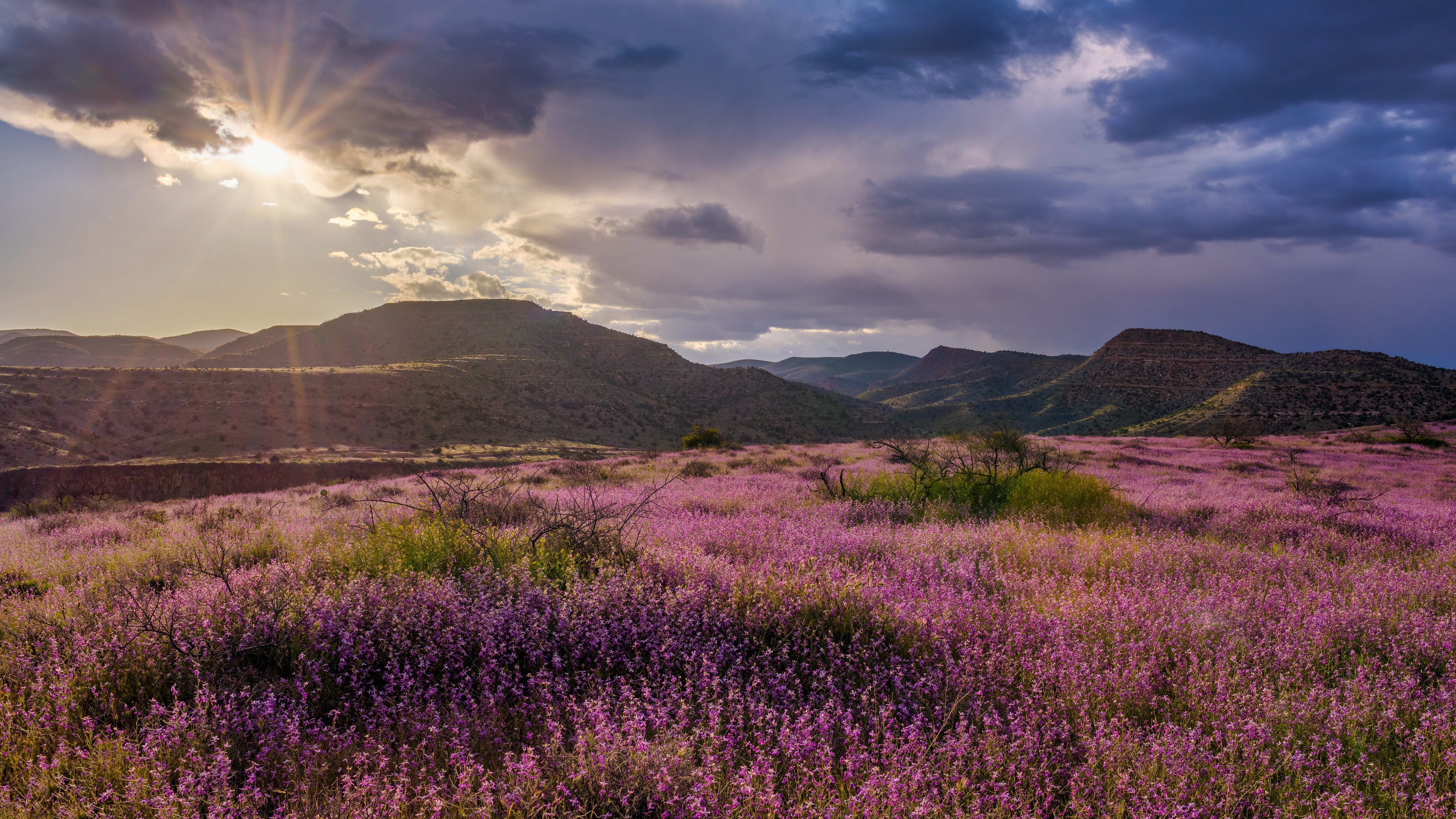 Nature Landscape Spring Flowers Field Sky Clouds Mountain Sun Computer Wallpaper 4K Wallpaper