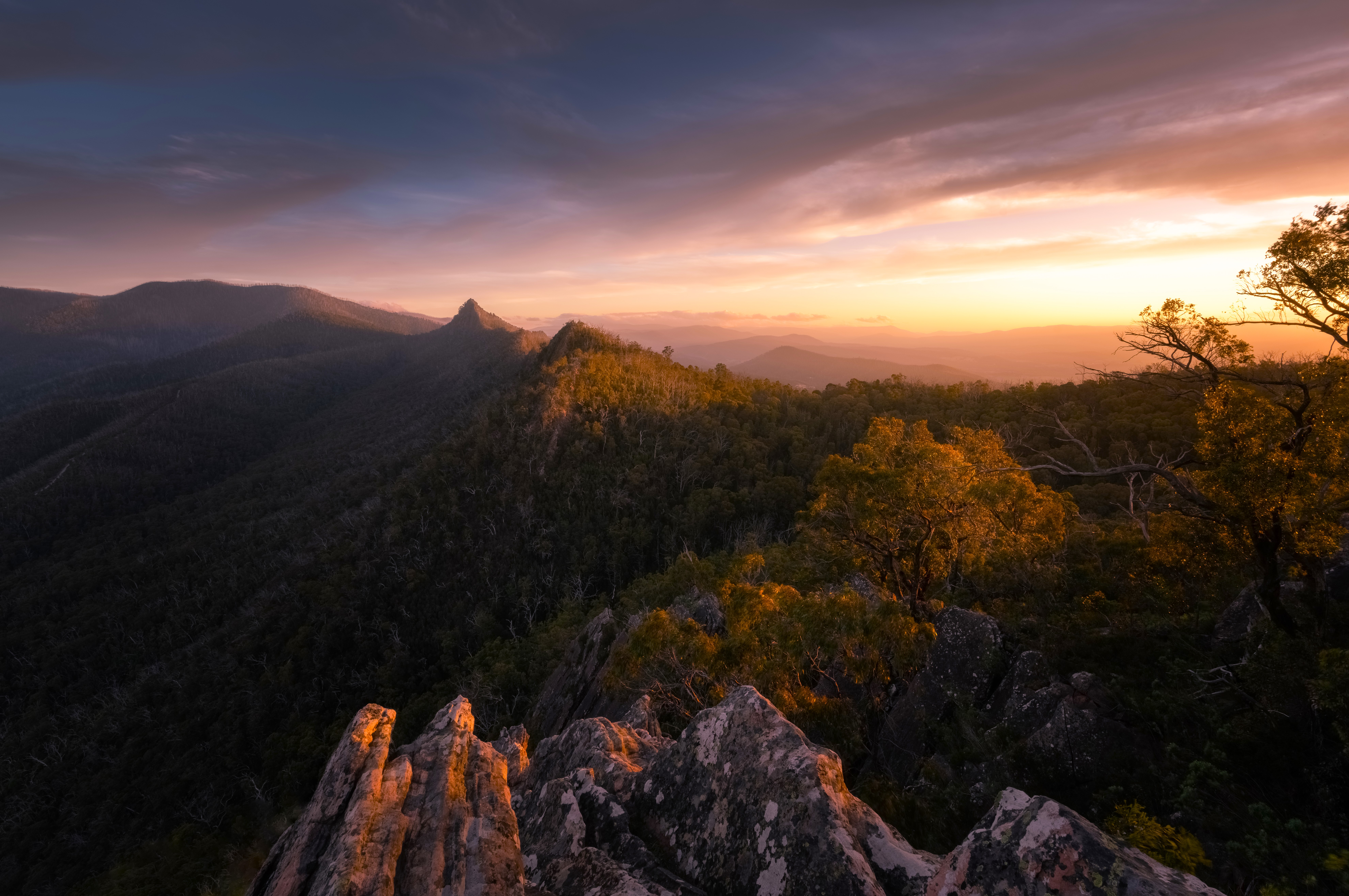 Nature Landscape Trees Forest Rock Plant Clouds Sky Sunset 8K Wallpaper