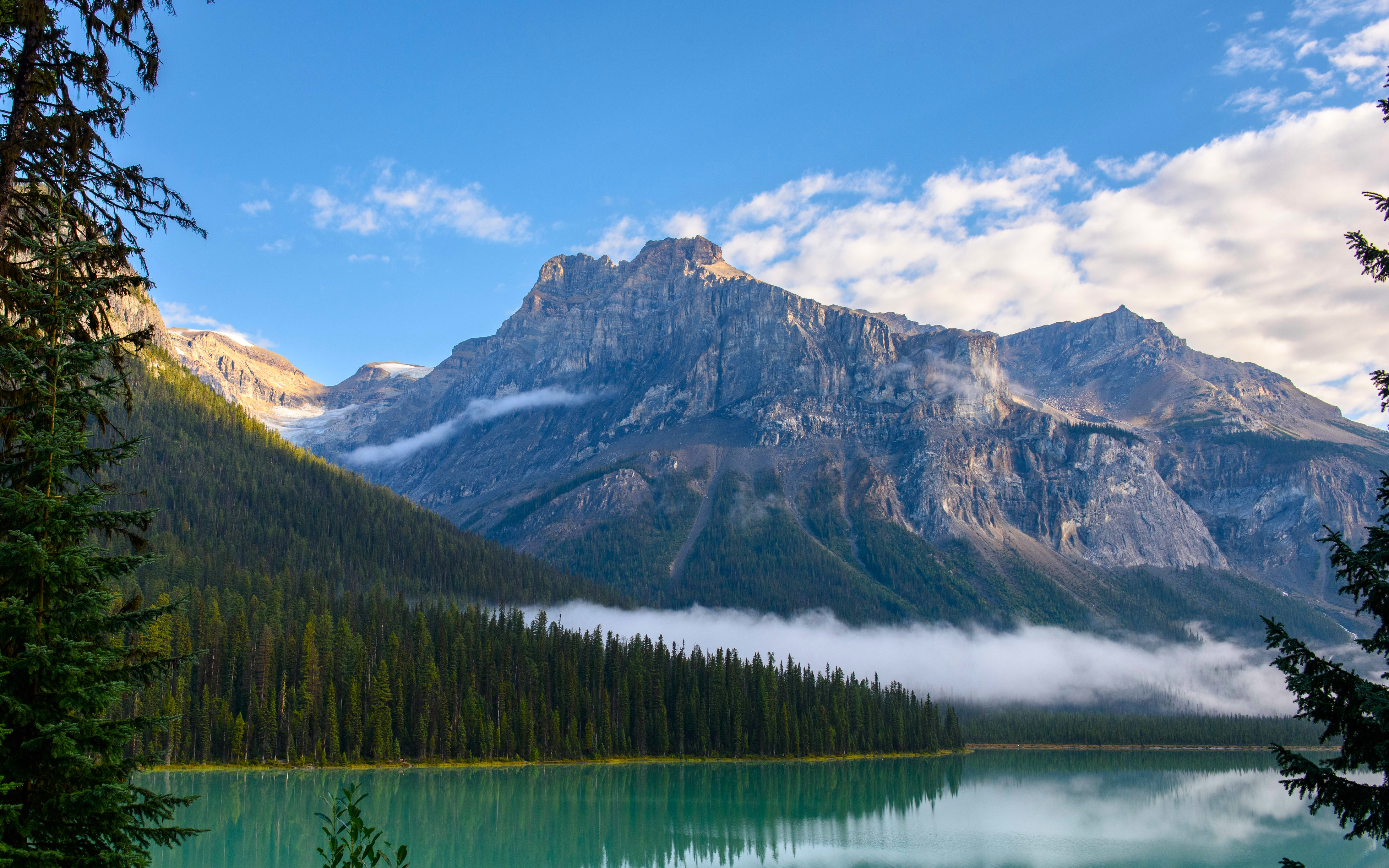 Nature Landscape Trees Mountains Sky Clouds Forest Pines Lake Water Emerald Lake Computer Wallpaper 4K Wallpaper