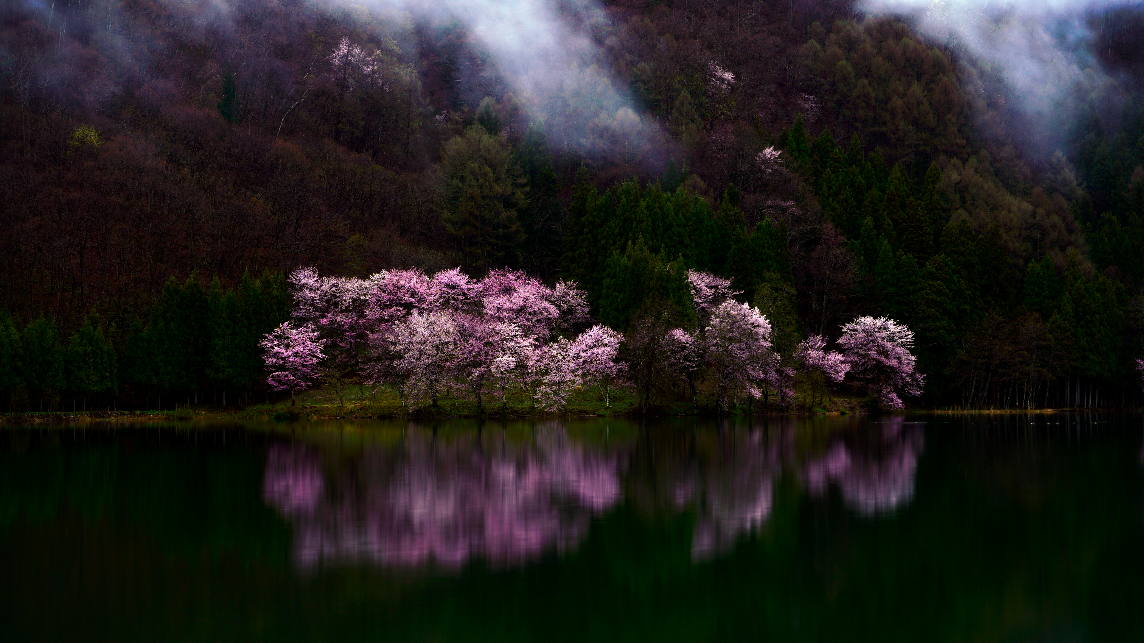 - Home > Landscape Wallpaper >Free download Nature Landscape Trees Mountains Water Forest Cherry Blossoms Low Light Valley Lakes 4K Wallpaper