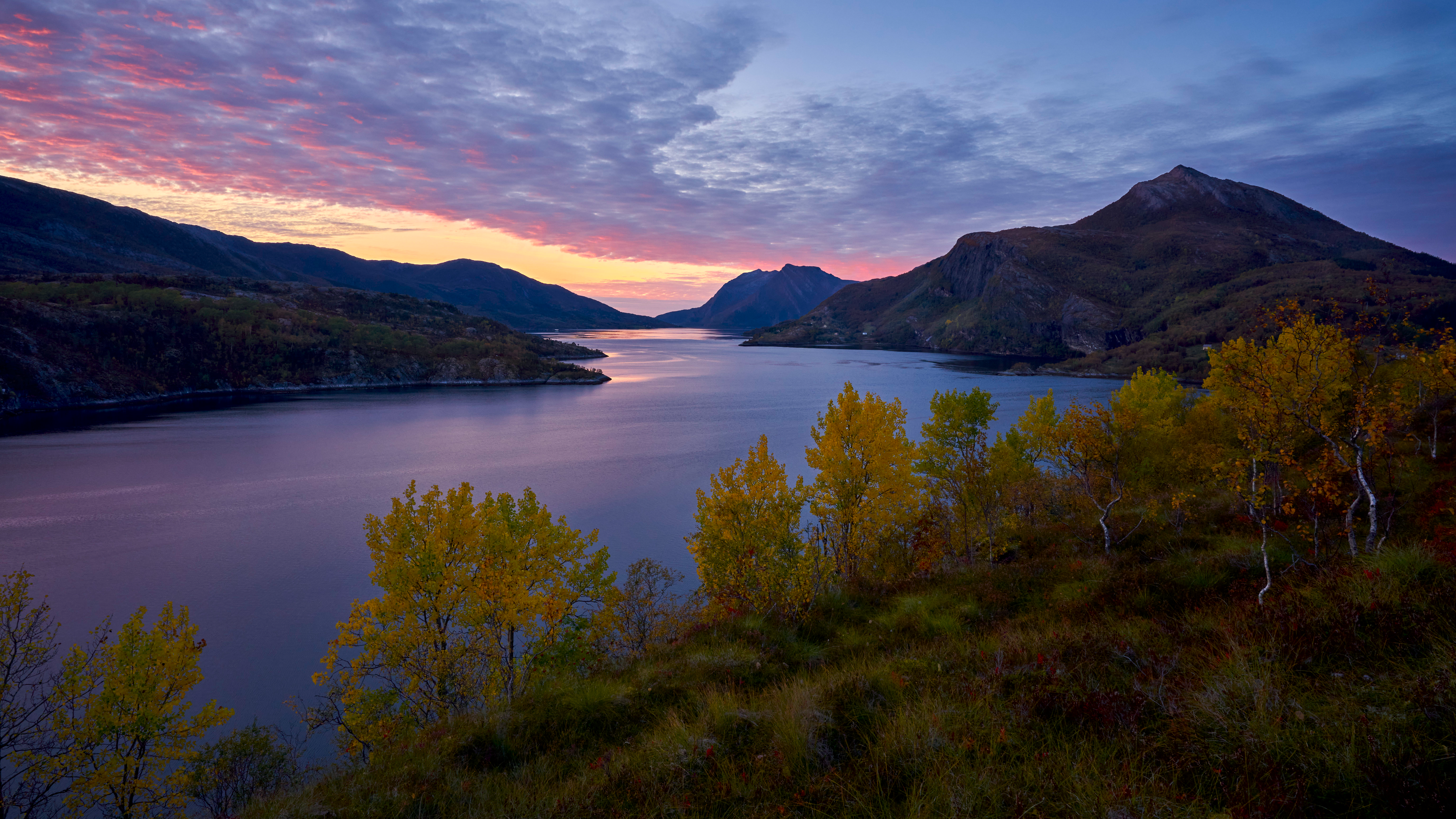 - Home > Landscape Wallpaper >Free download Nature Landscape Trees Sky Clouds Sunrise Water River Mountains Plants Grass Gorge Bay Autumn 4K Wallpaper