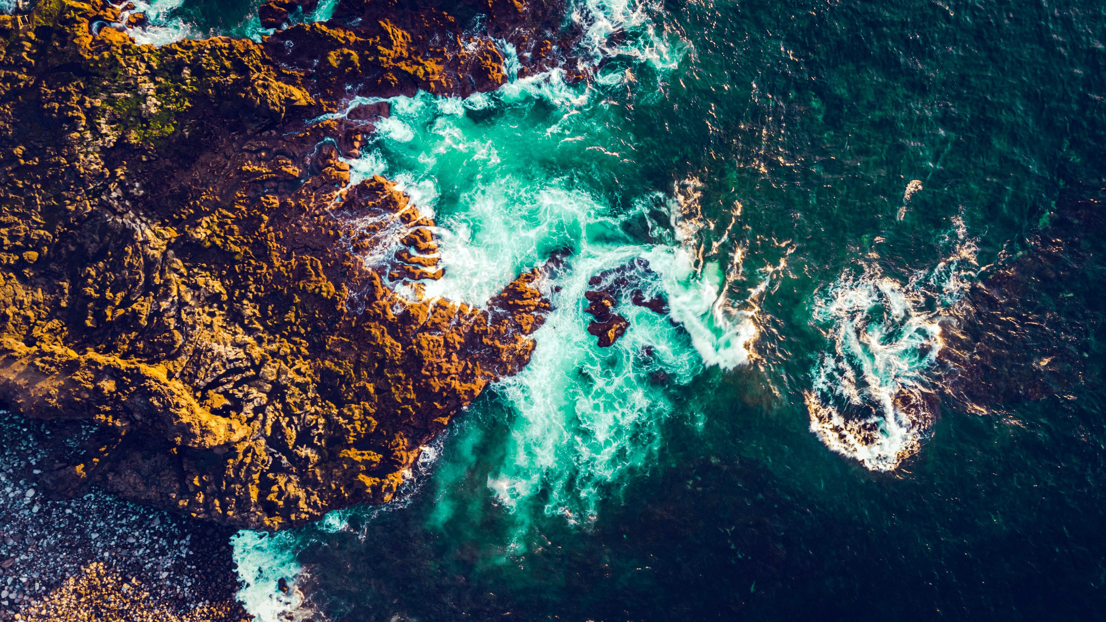 Nature Rocks Waves Coast Aerial View Drone Photos Water 4K Wallpaper