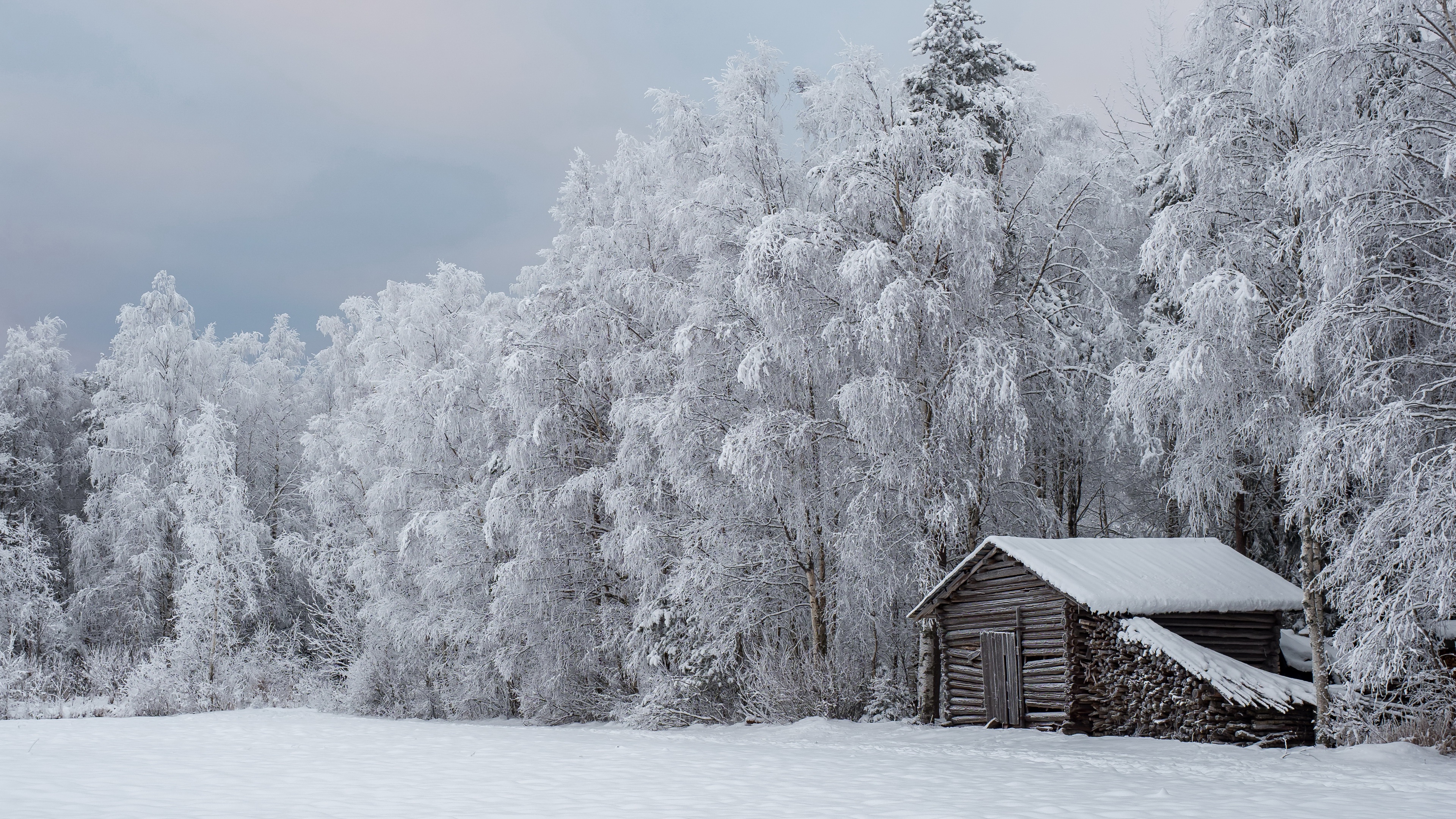 Nature Winter Ice and Snow Cold Outdoor Trees Hut 4K Wallpaper