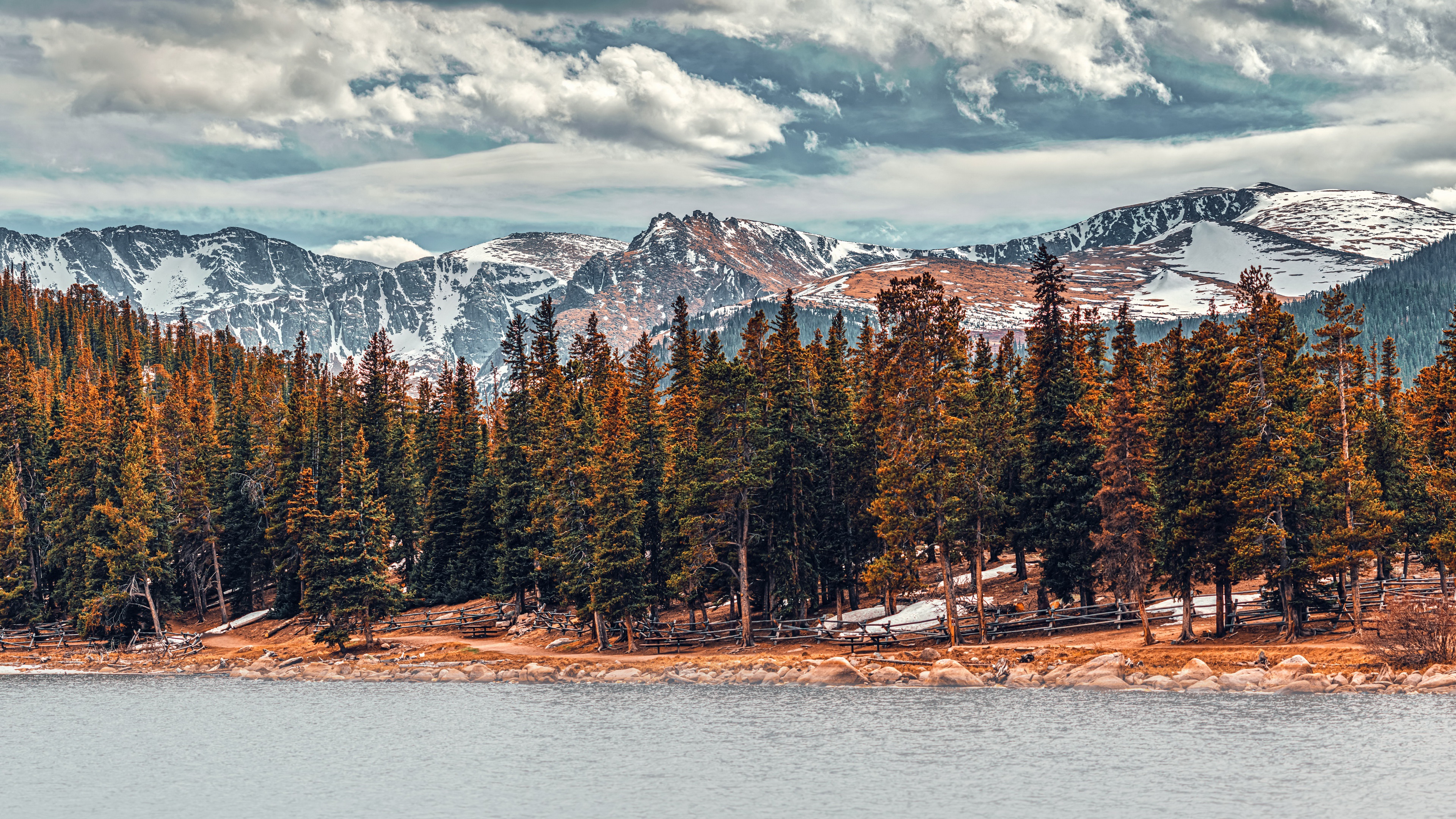 Free download Nature Park Trees River Mountains Sky Landscape Clouds Snow Computer Wallpaper 4K Wallpaper...