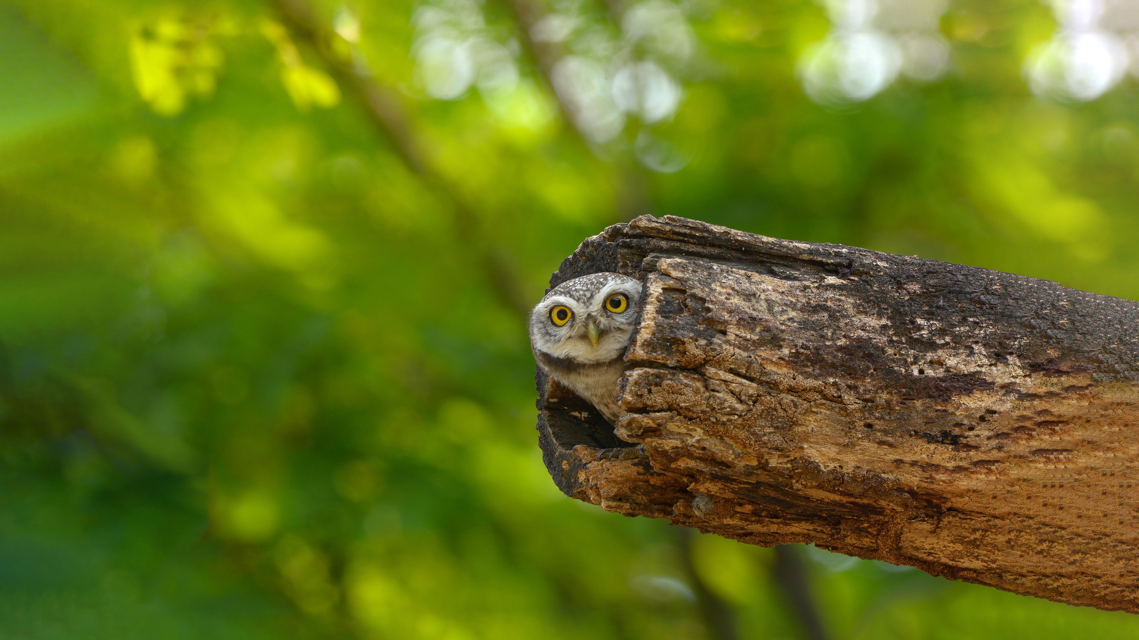 Owl Stump Forest Nature Wood Birds 4K Wallpaper