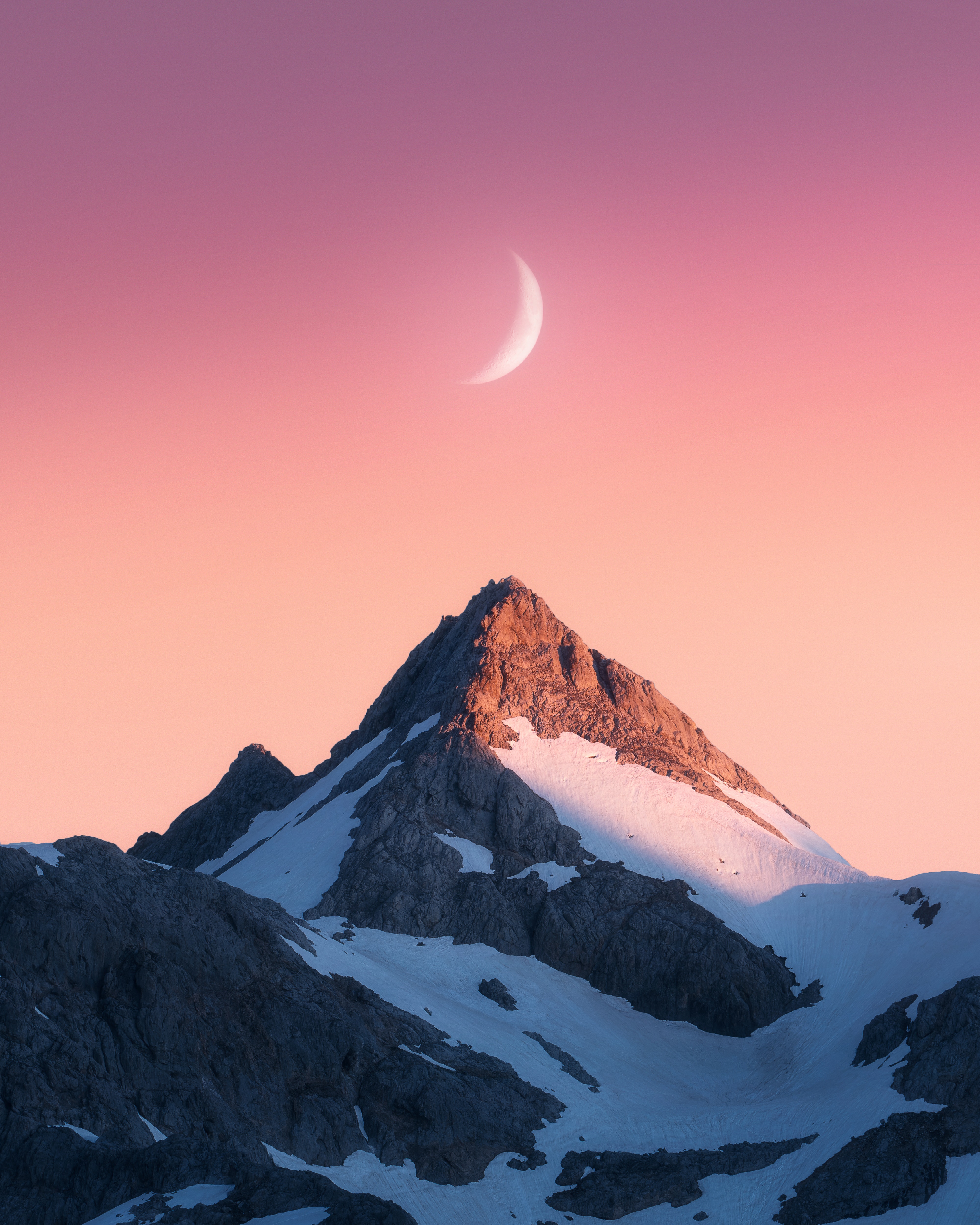 Peak Photography Mountains Landscape Moon Snow Nature Mobile Wallpaper 4K Wallpaper