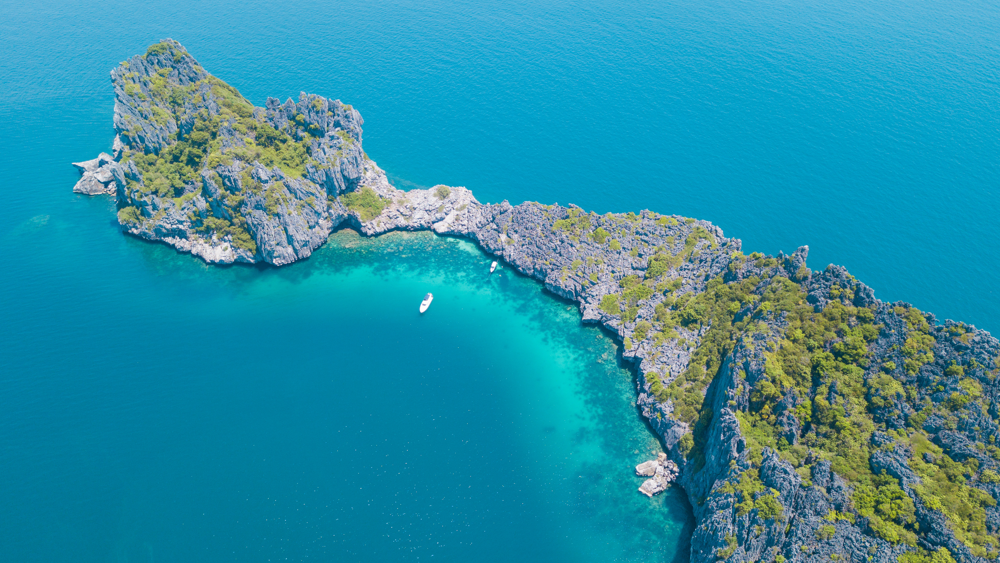 Photography Island Yacht Ocean Nature Water Rock Trees 4K Wallpaper
