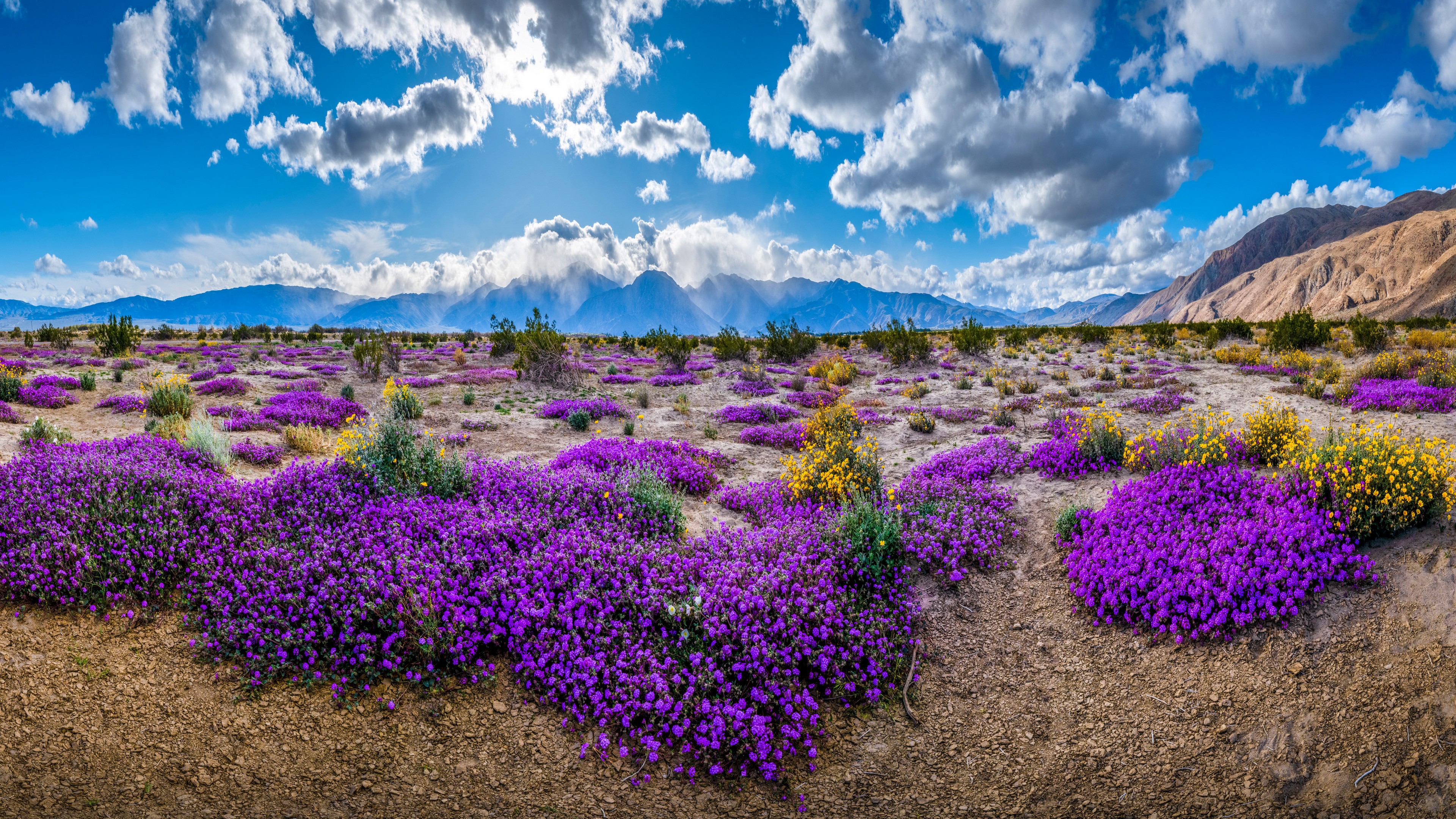 Purple Sky Nature Landscape Cloud Flower Mountain Computer Wallpaper 4K Wallpaper