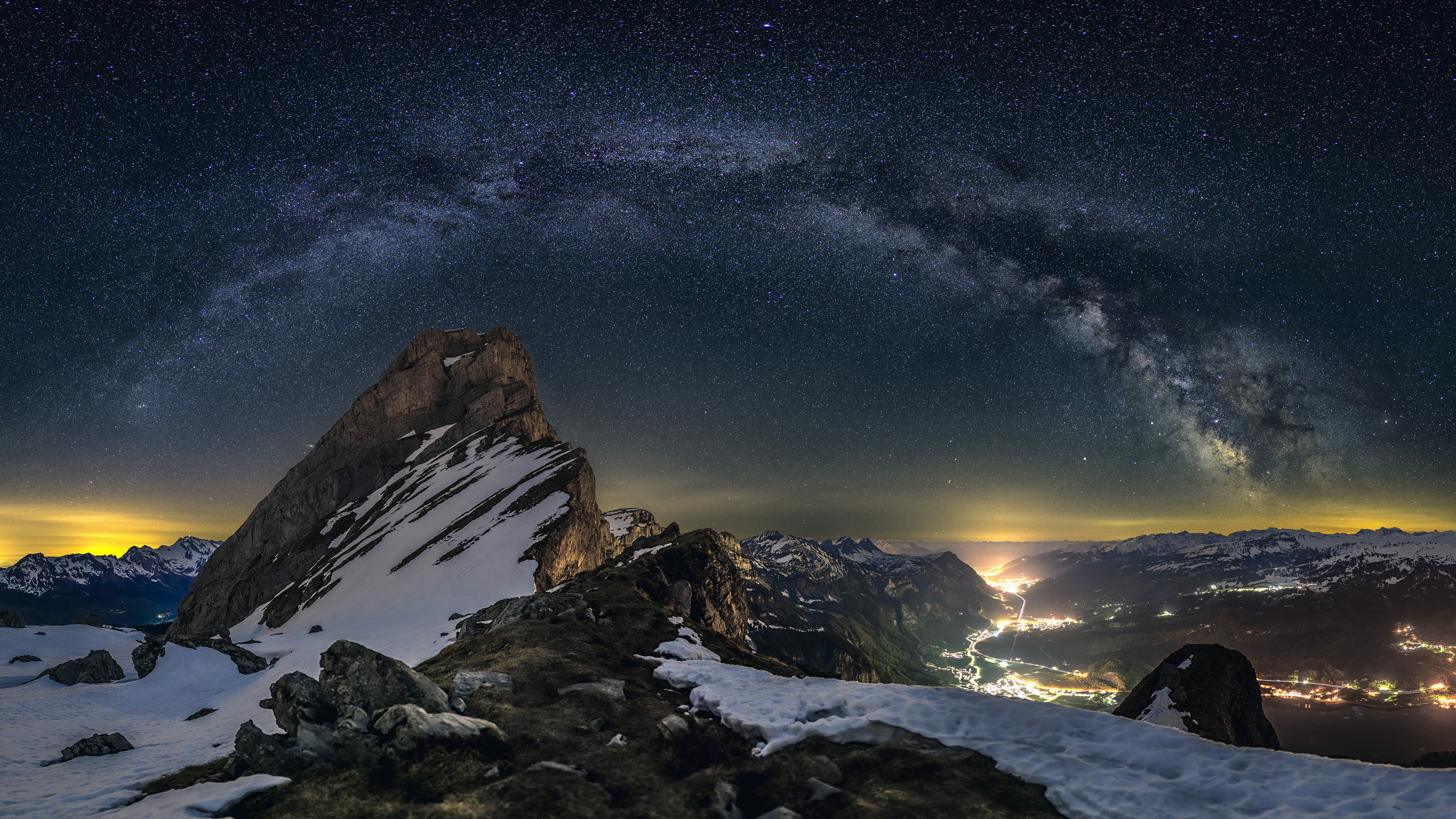 Rock Night Snow Stars Starry Night 4K Wallpaper