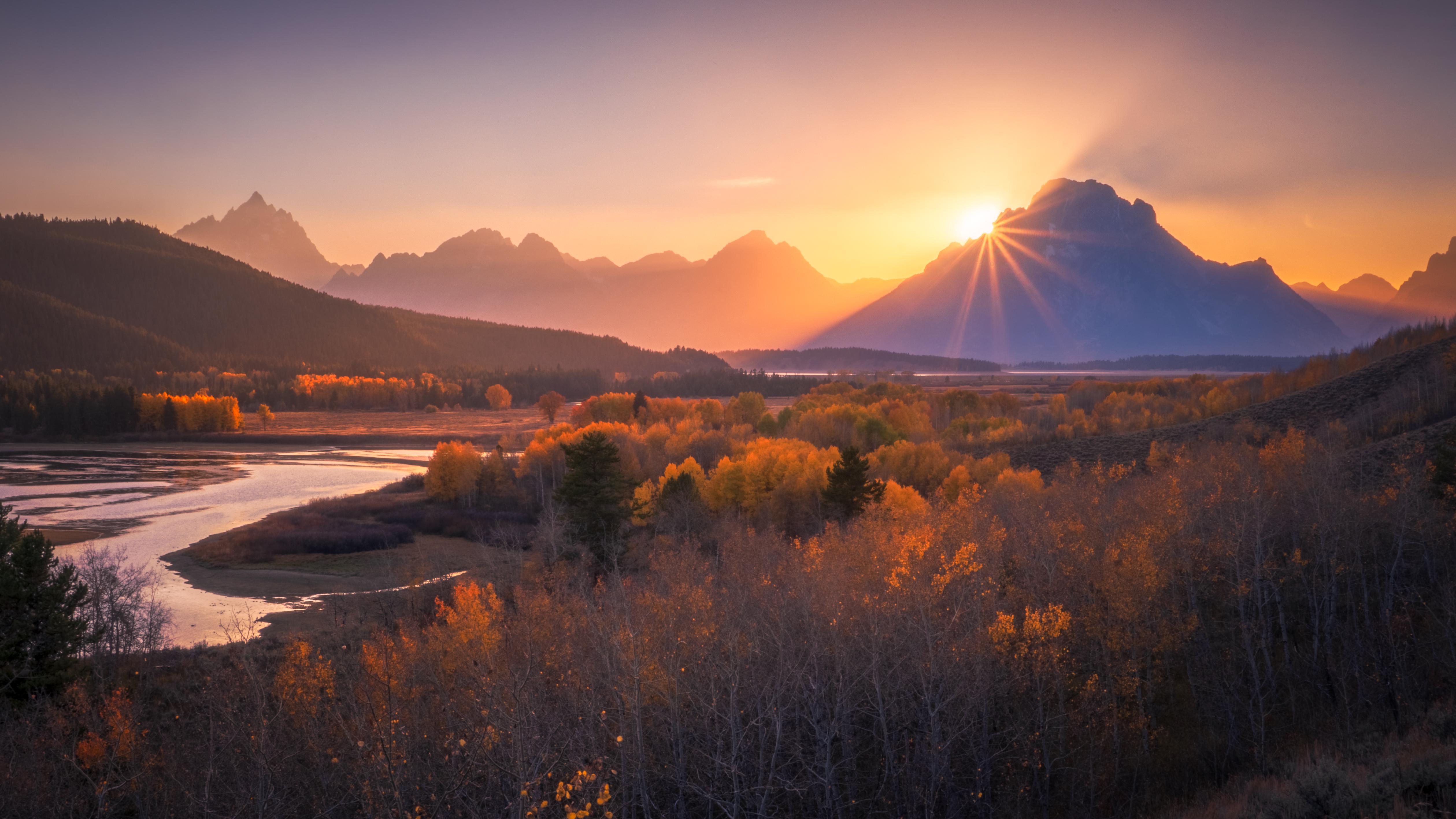 - Home > Landscape Wallpaper >Free download Sunset Mountains Forest Landscape Nature Autumn River Sunshine 4K Wallpaper