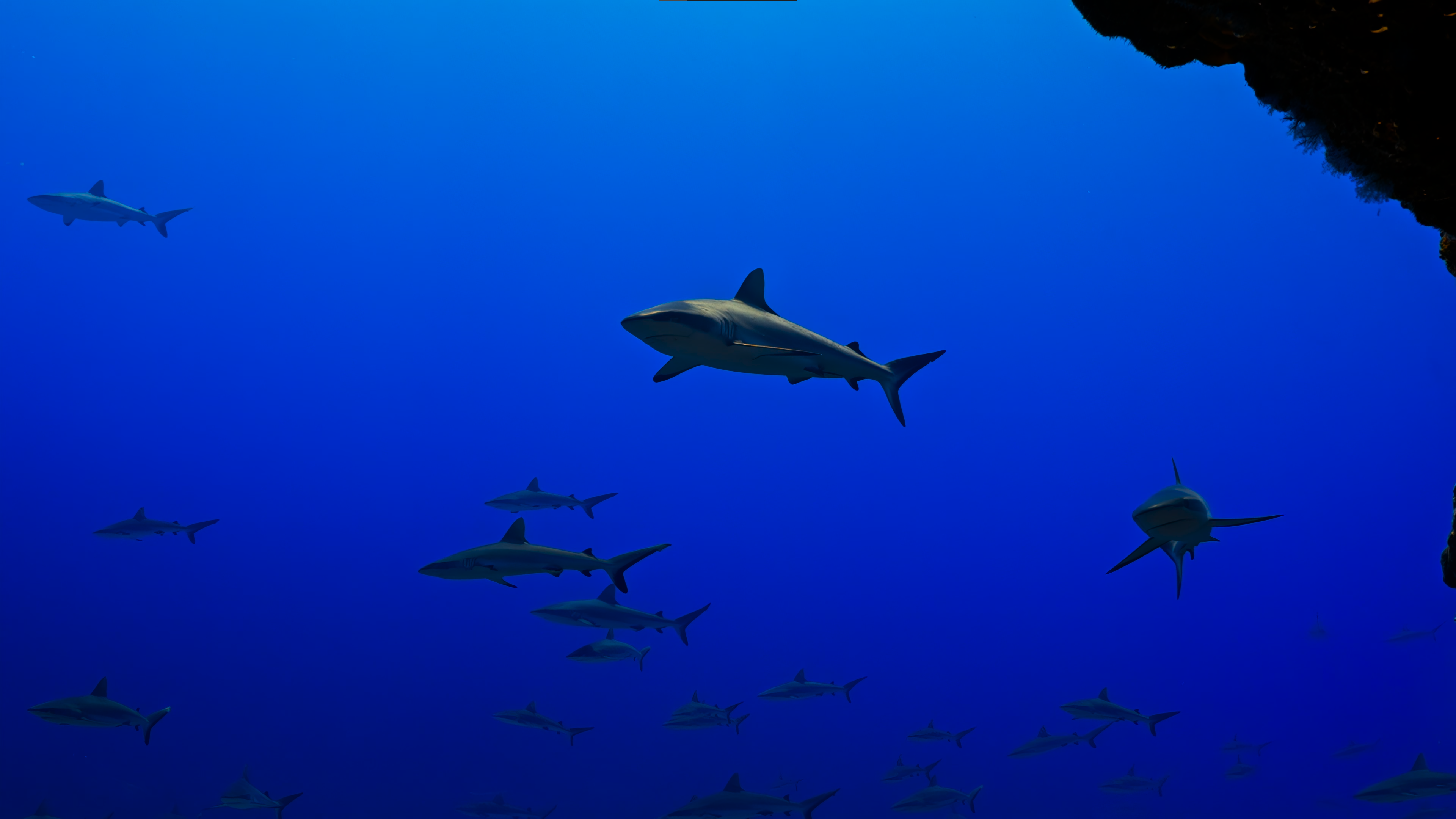 - Home > Landscape Wallpaper >Free download Underwater shark fish school coral nature seawater animal blue 4K wallpaper