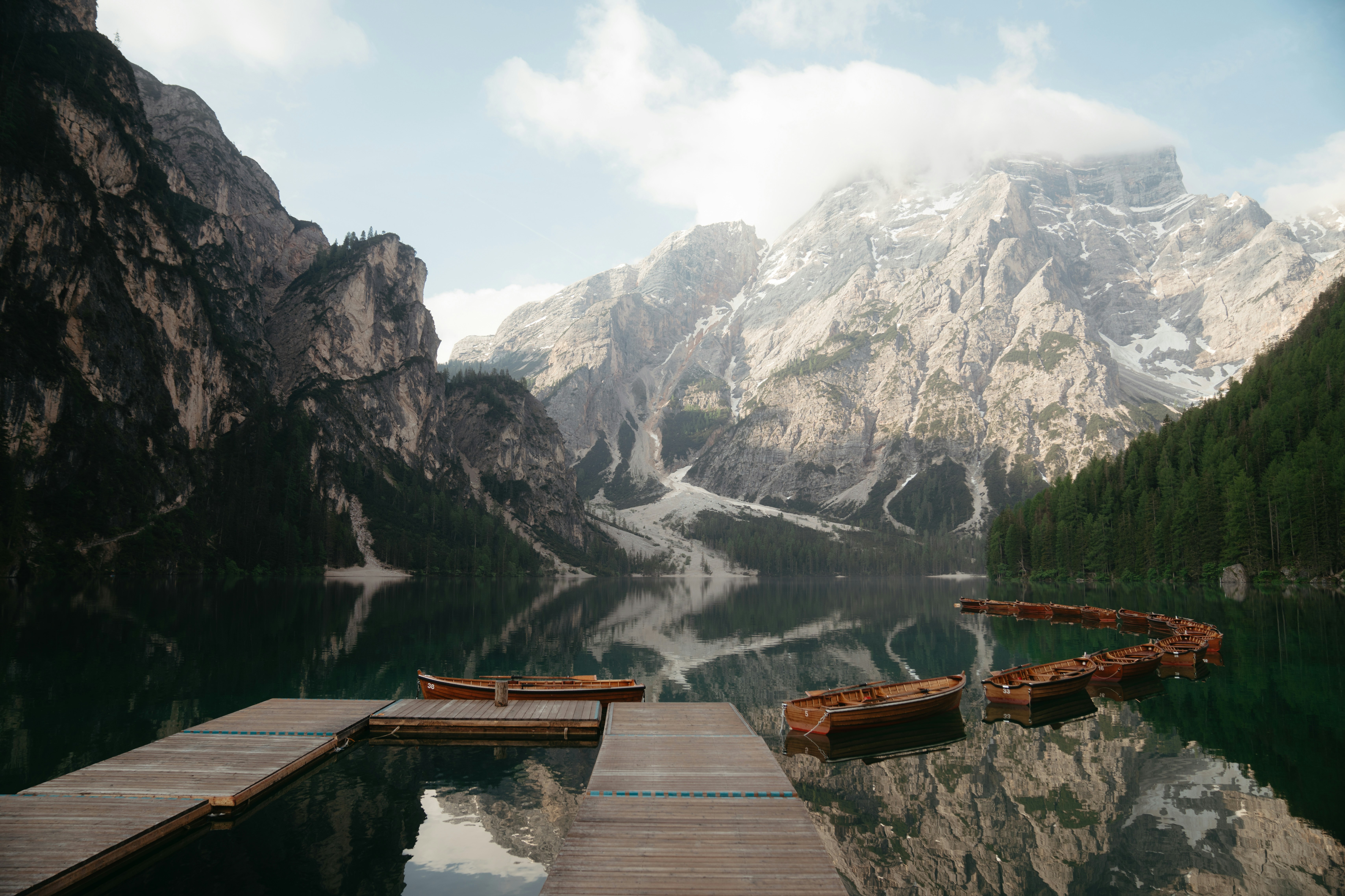 - Home > Landscape Wallpaper >Free download landscape lake water forest nature mountain reflection boat trees sky 4K wallpaper