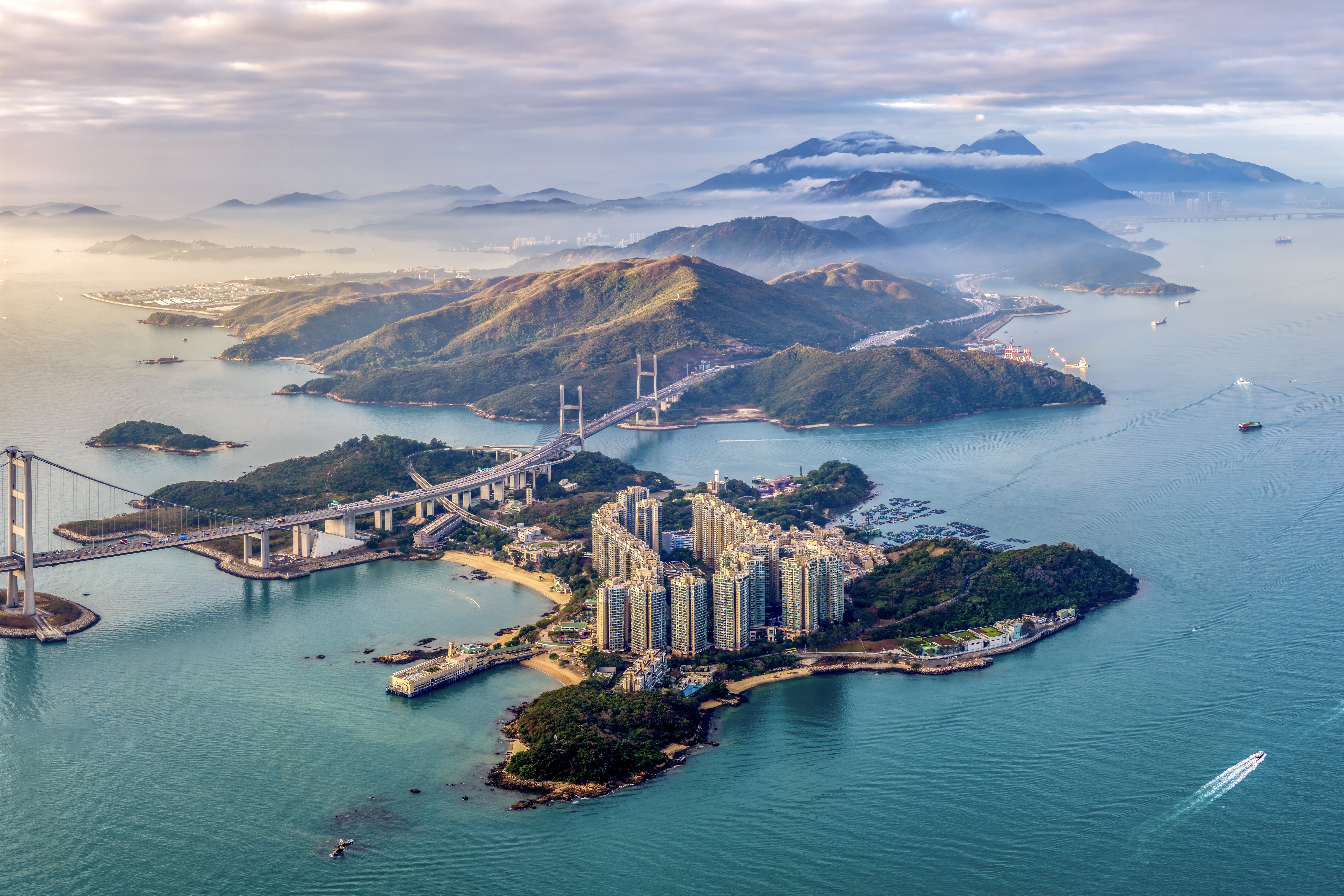 nature landscape clouds sky mountains bridge boat water sea town buildings skyscraper drone photos vision noah's ark 4K wallpaper