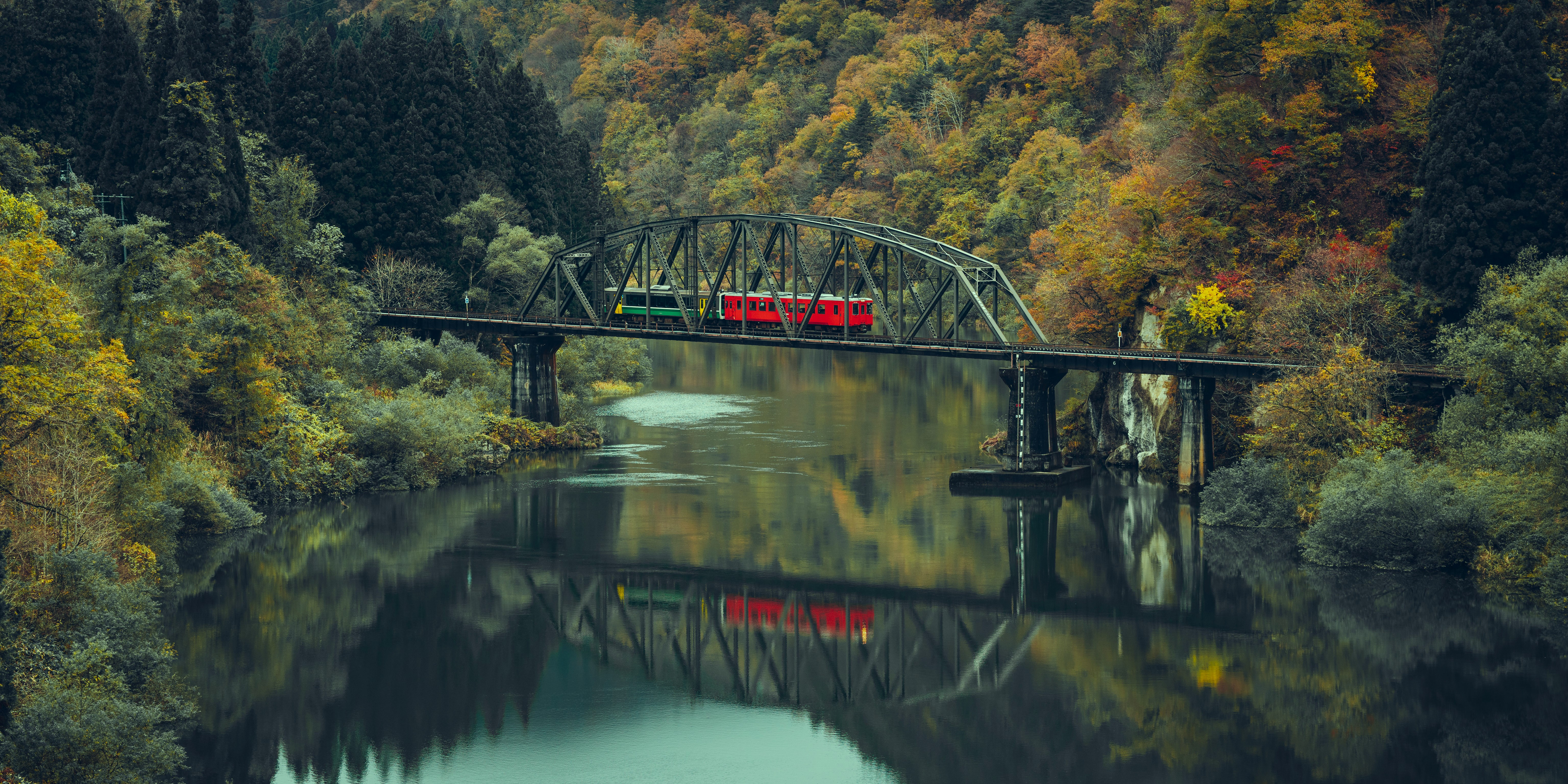 - Home > Landscape Wallpaper >Free download nature landscape trees forest water bridge reflection train autumn plants rock 4K wallpaper