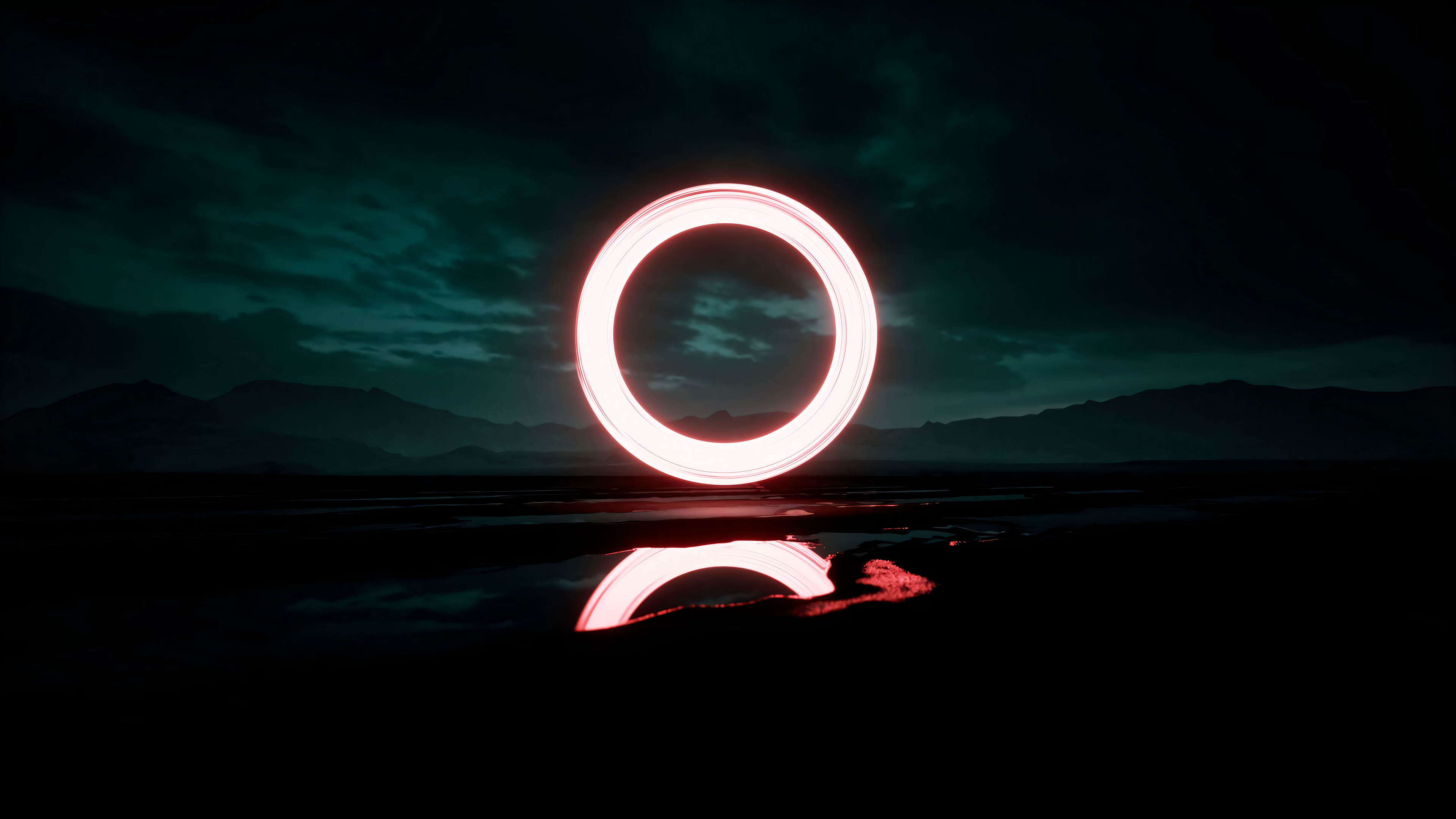 Circle neon dark reflection reflection water cloud night nature low light digital art red computer wallpaper 4K wallpaper