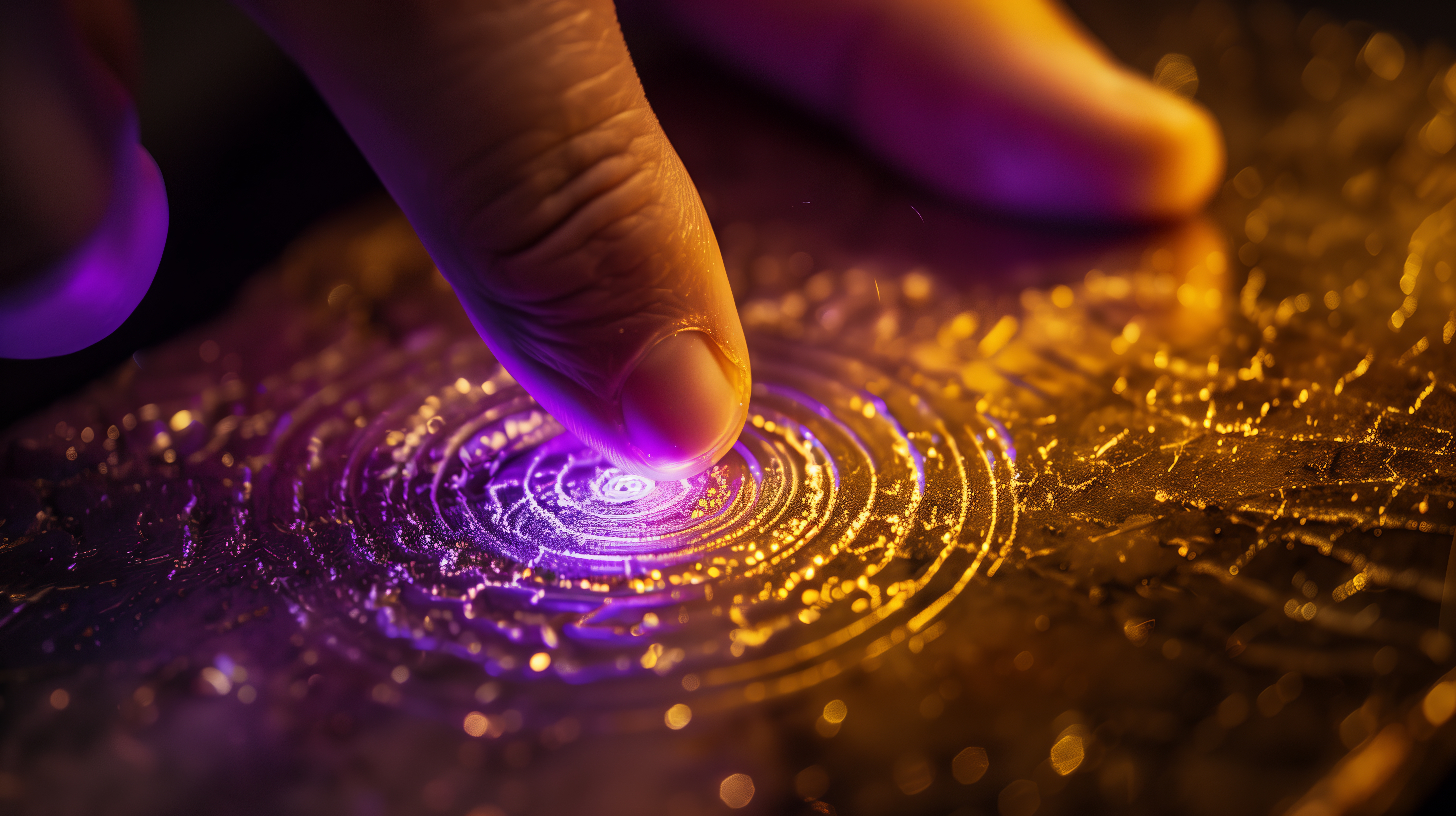 Finger Artificial Intelligence Art Glowing Gold Purple Magic Symbol Computer Wallpaper 4K Wallpaper