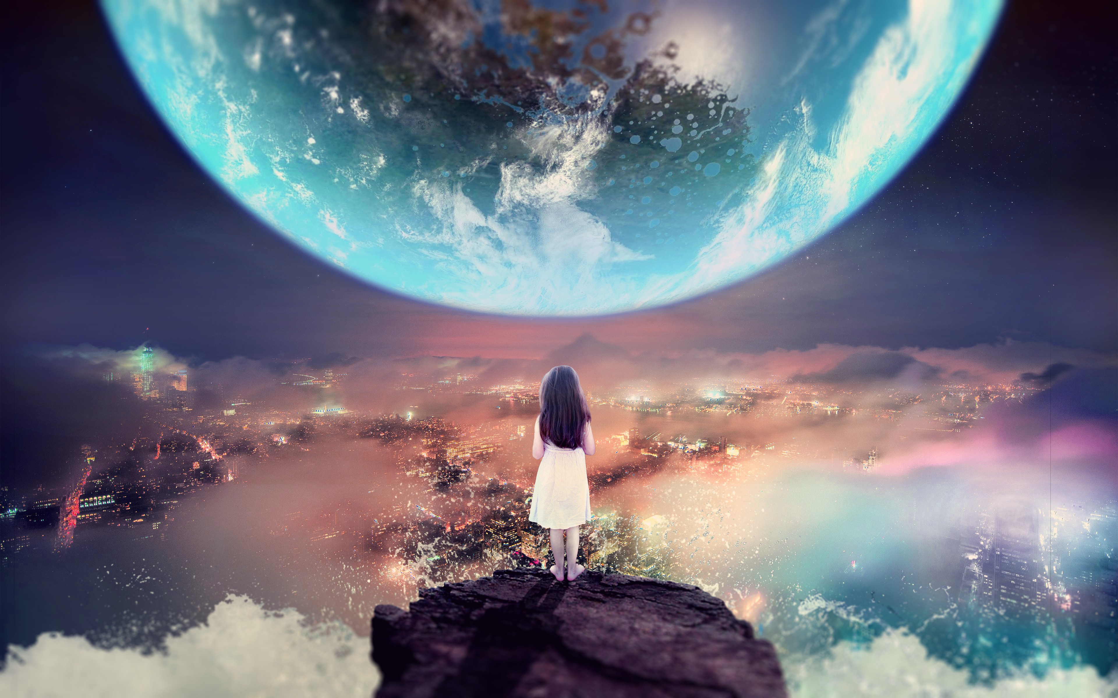 - Home > Universe Wallpaper >Free download Earth World Mist Cloud Nature AI Art Cliff Ocean City Night Planet Universe Computer Wallpaper 4K Wallpaper