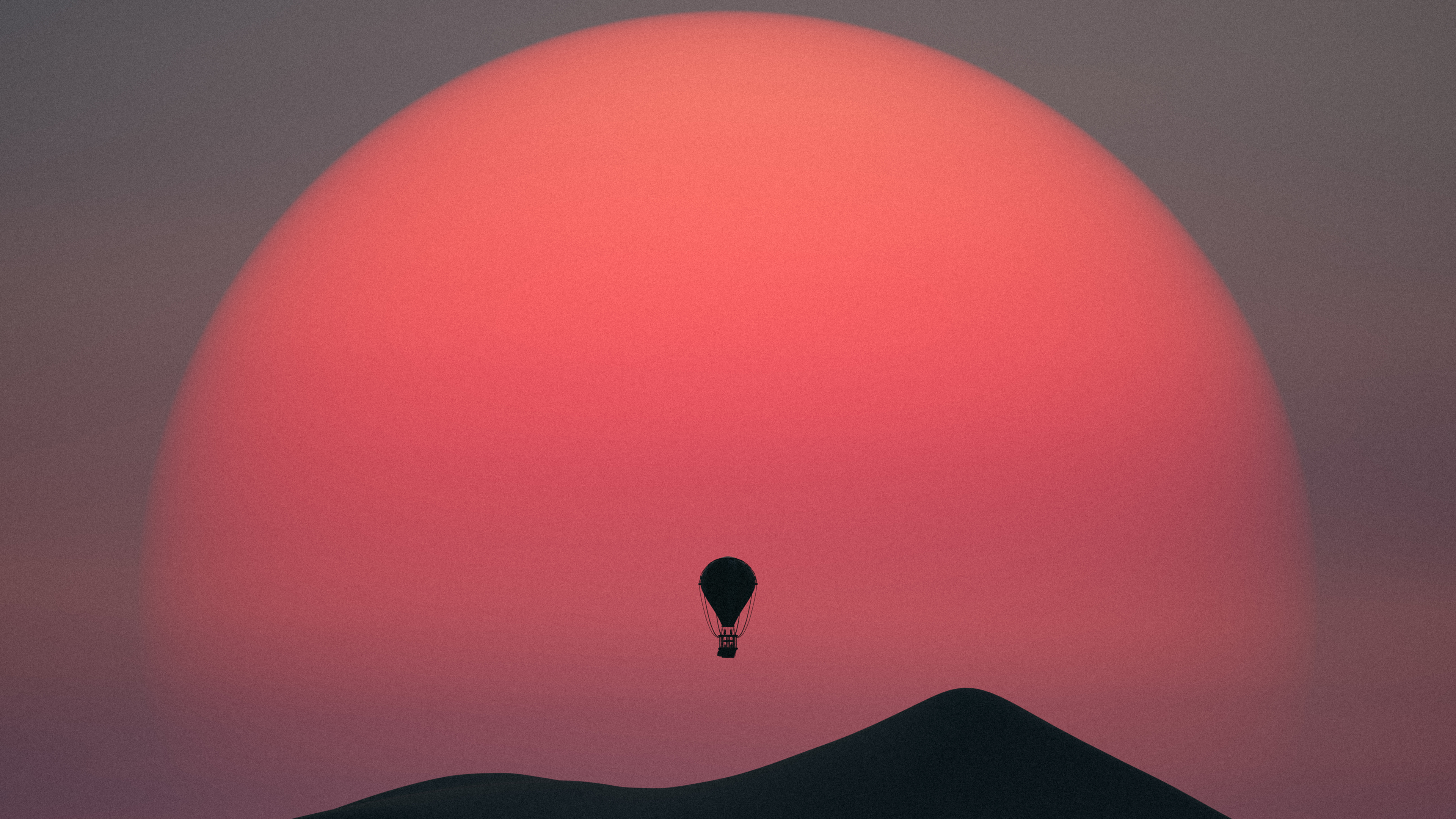 Digital art artwork illustration digital painting landscape sunset sun mountains hot air balloon 4K wallpaper